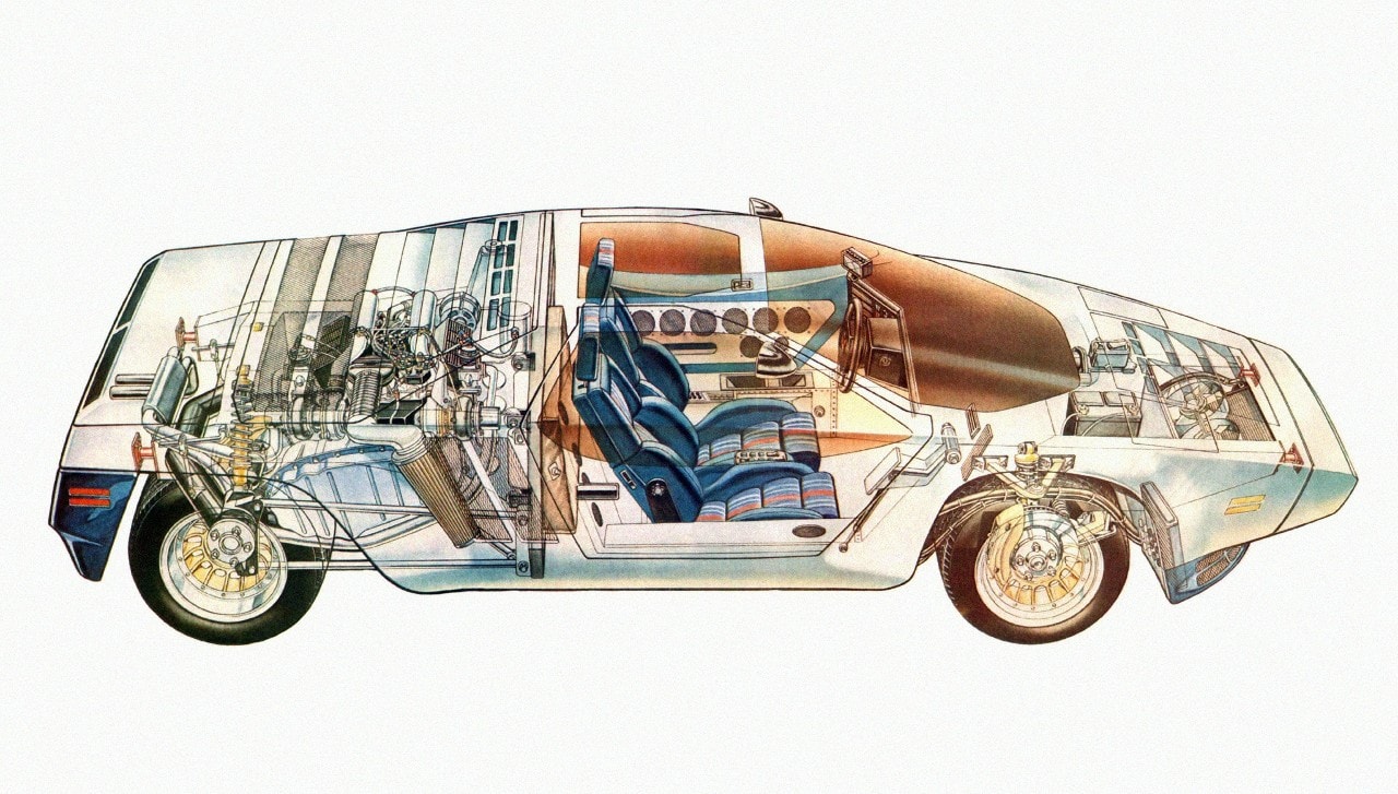 Une conception plus avancée encore était prévue pour les modèles à venir qui ne sont jamais venus…, toutefois, Jerry Wiegert s’était très fortement inspiré des lignes de la Bertone-Alfa-Carabo…