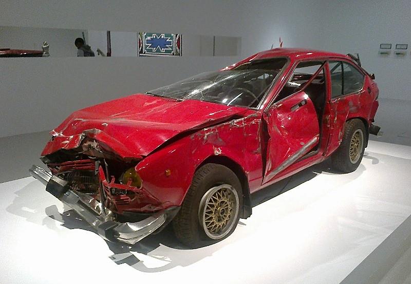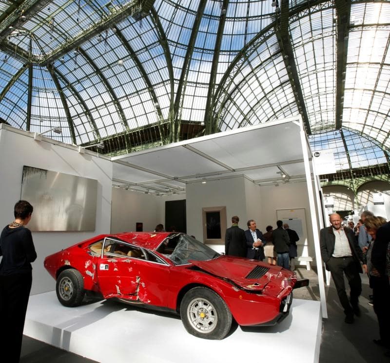Certaines oeuvres d’art sont plus évidentes que d’autres…, quand il s’agit d’un tableau d’un grand peintre, les prix que certains collectionneurs sont prêts à mettre peuvent atteindre des sommets…, de même pour certaines automobiles de collection qui au cours d’enchères régulières battent sans cesse des records…, pedigree, état concours, rareté, faible kilométrage… autant de facteurs qui jouent dans la côte de chacune de ces autos de collection…, il est donc plus difficile à croire que l’on puisse dépenser de fortes sommes d’argent pour acquérir une voiture accidentée…, c’est pourtant ce qui a eu lieu durant la Fiac, la Foire Internationale d’Art Contemporain, à Paris en octobre 2013.