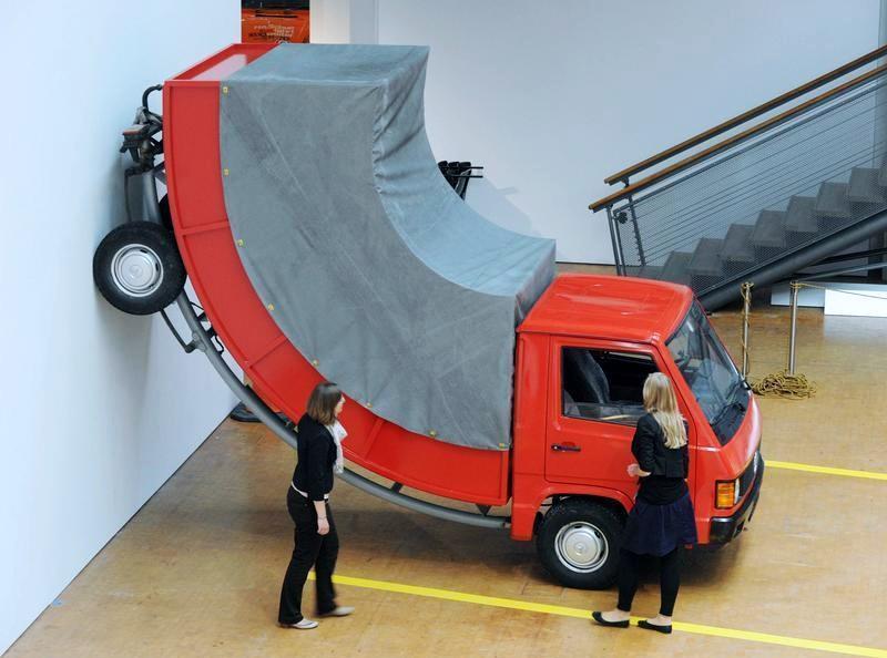 Autre style, autres créations, drôles, immédiatement accessibles, les oeuvres d’Erwin Wurm jettent un trouble sur notre quotidien pour en souligner les codes, les angoisses et les absurdités…, Wurm en allemand signifie “ver” et l’oeuvre de l’artiste autrichien Erwin Wurm s’insinue effectivement comme un ver dans le fruit de la société contemporaine, ou encore dans le fromage dégoulinant d’angoisses et d’absurdités des petits faits triviaux du quotidien.