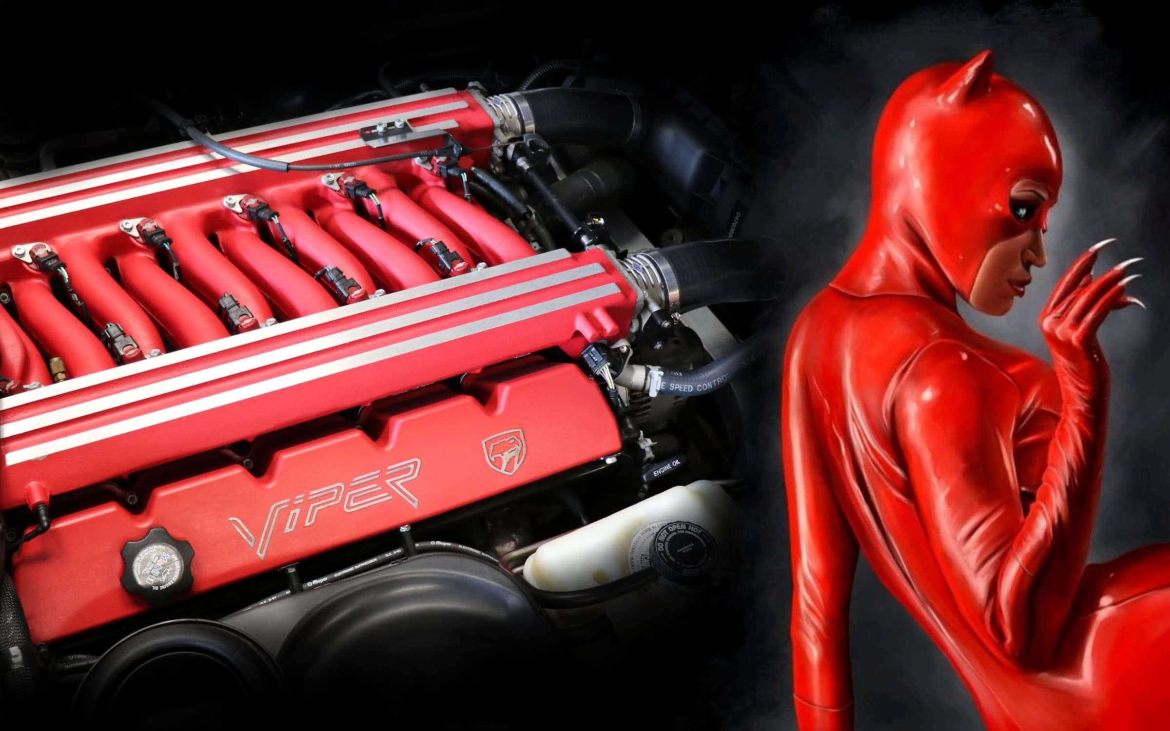 De chaque coté du capot, les 2 sorties factices d’échappement avaient été multipliées…, 4 tuyaux…, les ailes rendues plus aérodynamiques grâce à la suppression des feux originaux, remplacés par des non-originaux, similaires mais différents…, la conversation devenait pénible…, là, et j’ai insisté, je n’étais pas d’humeur à discutailler d’Excalibur…, j’étais venu à cause de la promesse d’une soirée textuellement illégale mélangée à la prise de photos de sa Viper jaune avec elle en rouge vif dans des poses plus qu’équivoques, un moment sexuellement transmissible et partagé où, à mon sens, je pourrai trouver de la matière intéressante pour ma créativité…