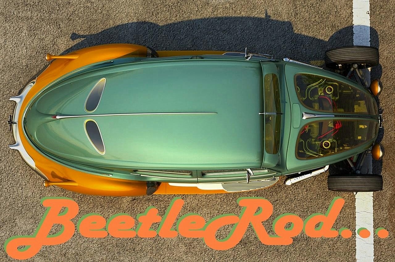 Bon, ok…, en réalité, cette VW BeetleRod ne révolutionne rien, quoiqu’elle se positionne dans la pure continuité de ces fantasmes crus que l’on aime tant, générant des songes moites en clair-obscur, entre auteurisme expérimental un peu branlatoire et sensualité frontale, comme si on toquait aux portes psychiques d’un baisodrome mécanique.