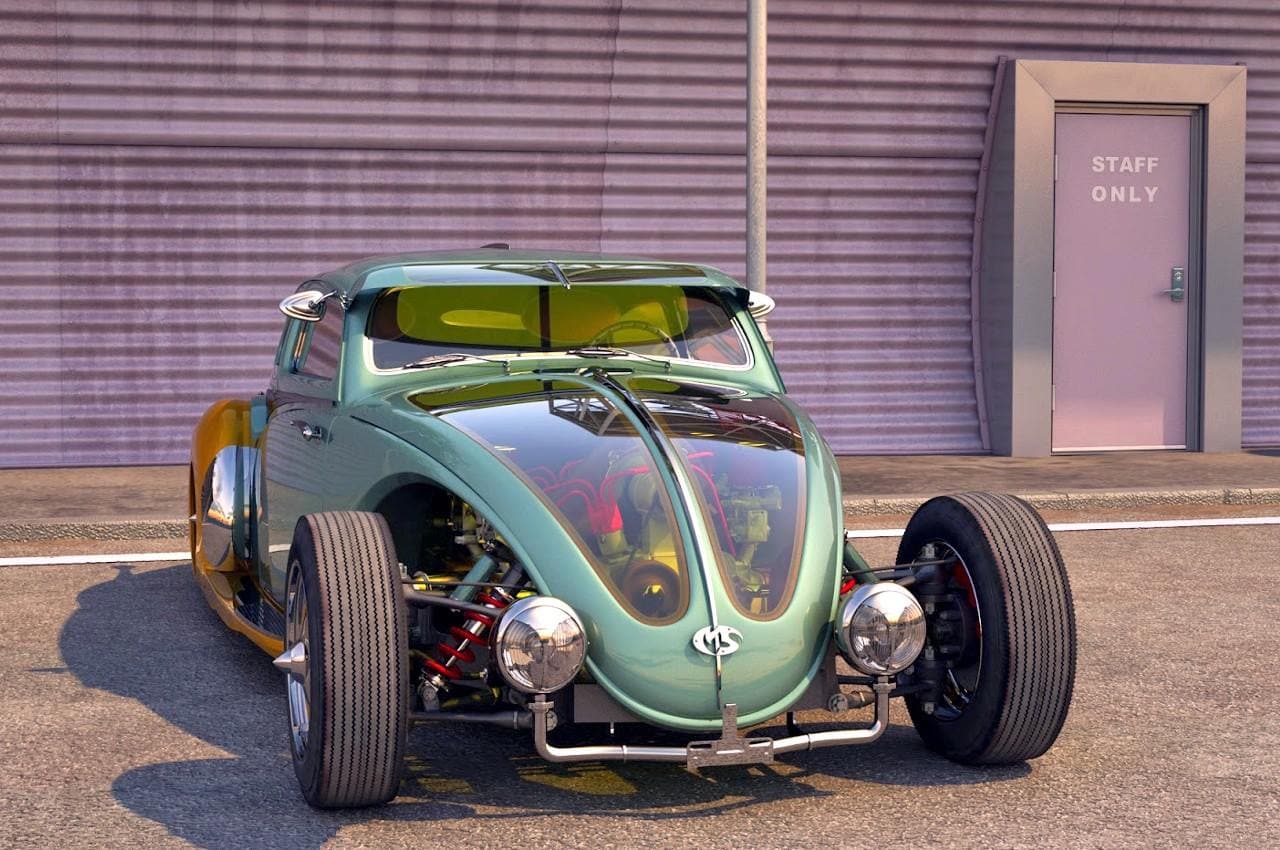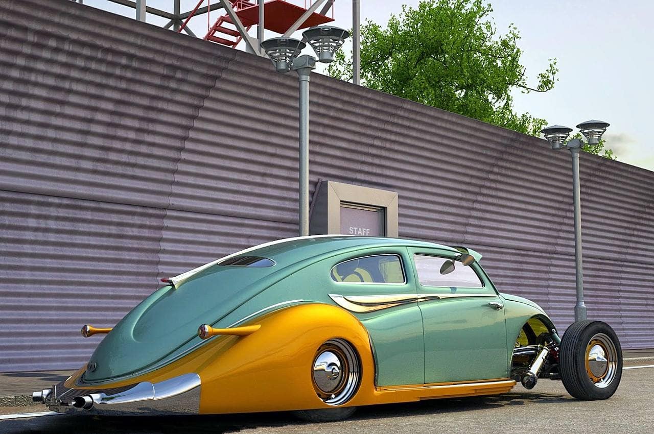 Bien que les VW Cox-Beetle peuvent représentent un bon point de départ pour générer des conneries, leur conception architecturale due au génie du Heer Doktor Porsche, ne permet pas une construction de type Hot-Rod exactement dans les standards du genre…