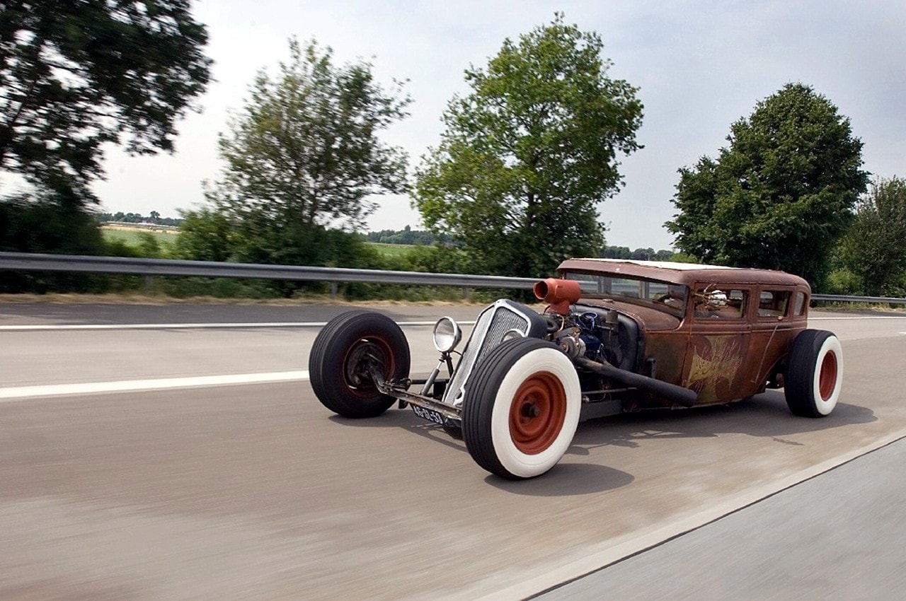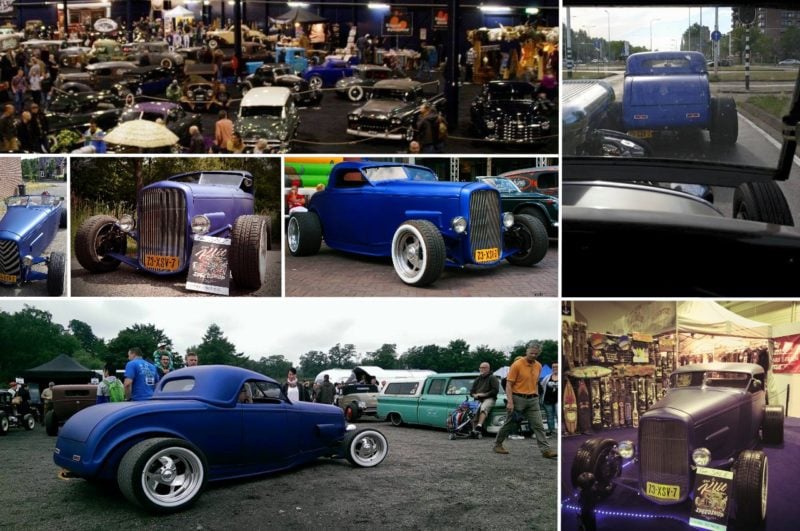 La Hollande, c’est la terre promise des Hot-Roddeurs déviants, la patrie du sérieux débridé et de l’humour-tulipe de fond de jardin, c’est un pays ou les non-hollandais viennent y “tourister” comme des gamins devant les vitrines chatoyantes de marchands de bonbons dont les étals dégorgent leurs sucreries multicolores où ils peuvent allègrement se servir en payant sans discuter pour avoir leur dose quotidienne et indispensable de bétises qui ne provoquent pas de caries, mais, à la rigueur, peuvent à la longue occasionner des dommages cérébraux irréversibles ou une vie sociale en constante régression…
