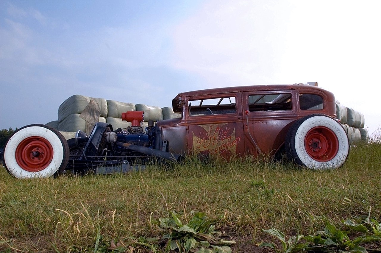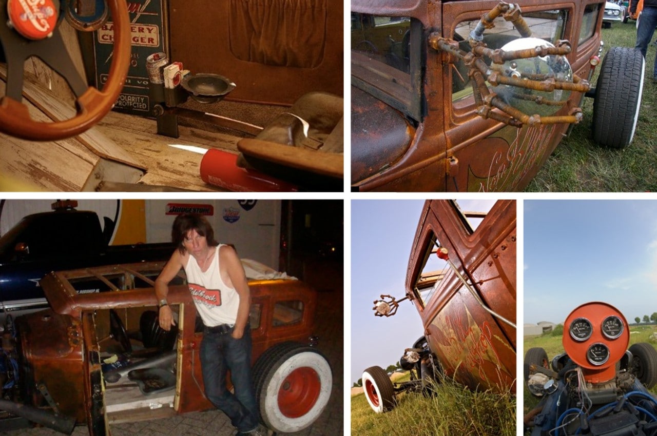 Qu’on me spermette d’effectuer un petit coming out…, oui, je l’avoue, je suis très orienté vers le post-nuke 80’s…, que celui qui n’a jamais rigolé devant une voiturette de golf tunée avec du papier alu et quatre tuyaux de PVC évoluant dans un terrain vague me jette la première pierre…, mais mon orientation se débride en fait réellement vers le Rat-Rodding…, ce n’est donc pas, je le confesse, sans une certaine partialité que je vous présente ce chef-d’œuvre du genre, oeuvre assez génialissime de mon ami Marcel Van Staveren, de l’enseigne Von-Klit Speedshop, qui donne toutes ses lettres de noblesse à cette orientation quasi Steam-Punk du Rat-Rodding.