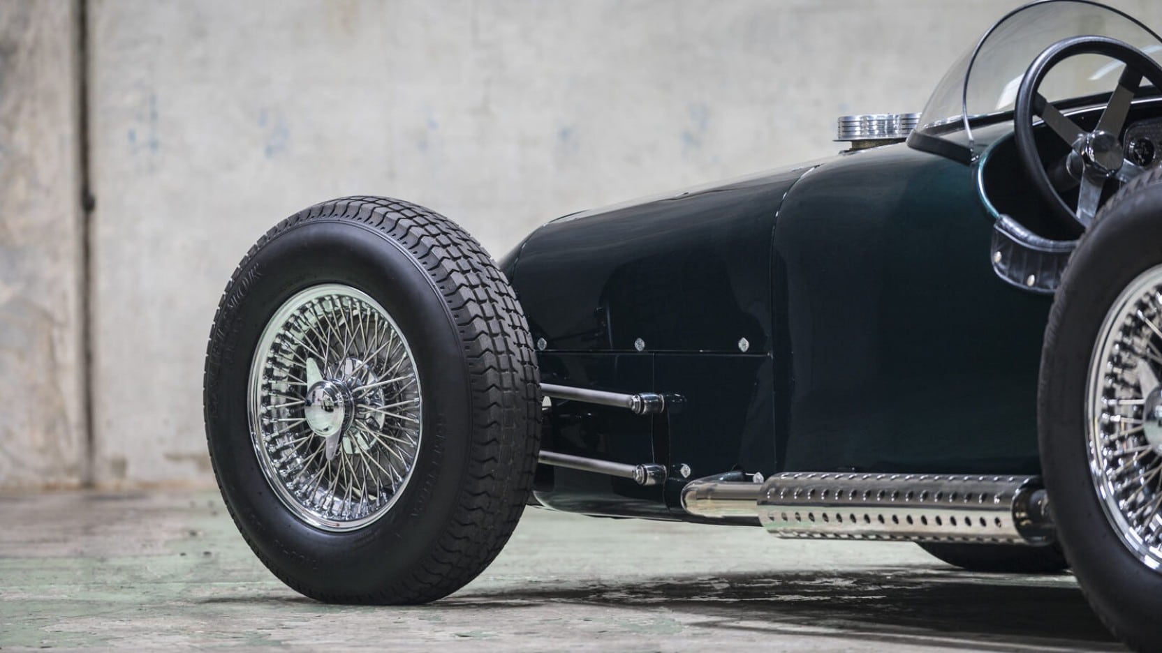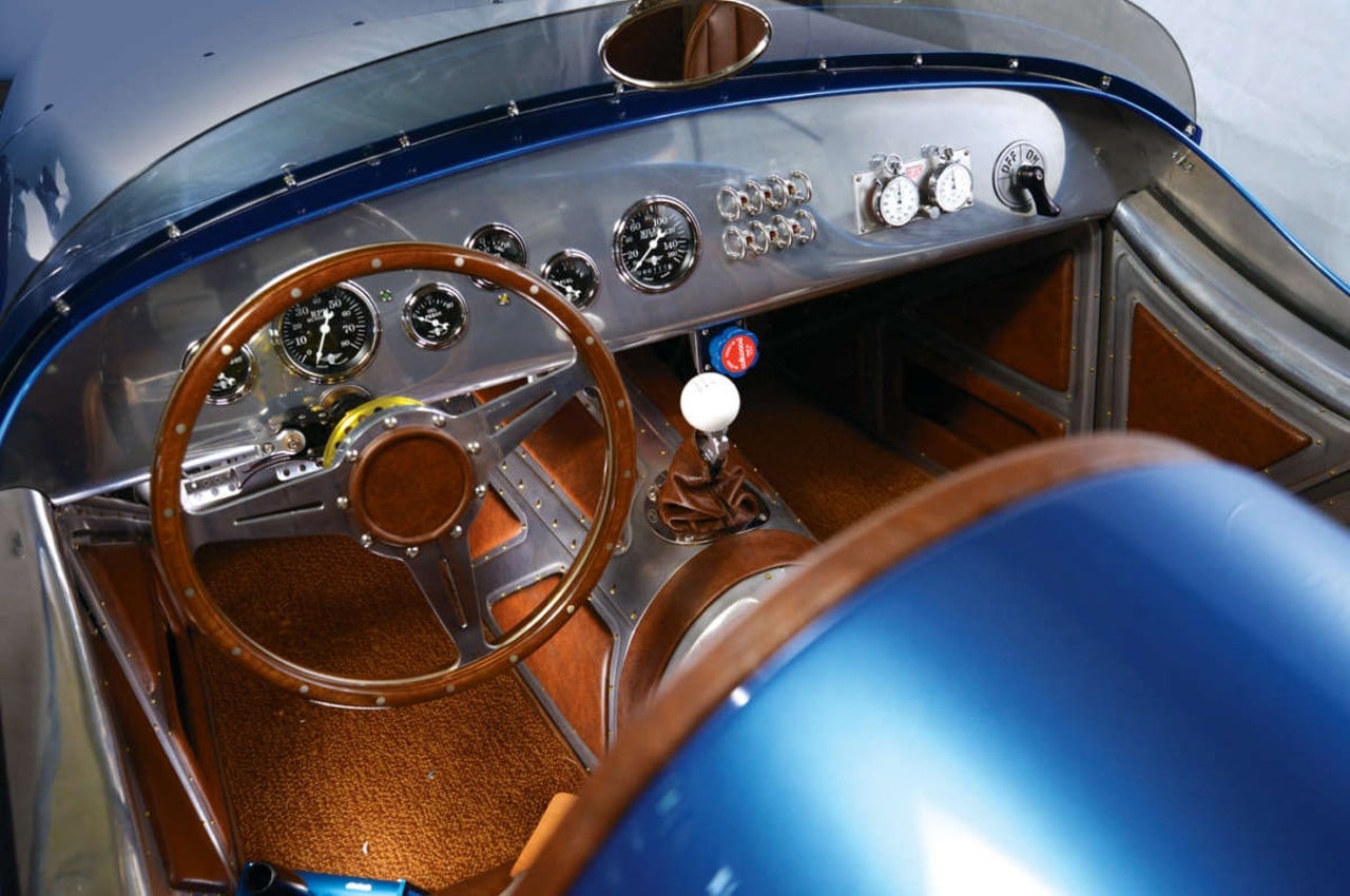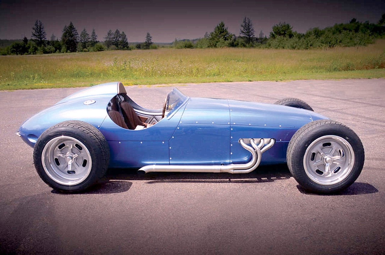 Wally a motorisé la voiture avec un V8 Chevrolet 283ci à double quad’53 et une transmission trois vitesses Corvette. Mais en ce qui concerne l’extérieur de la voiture, Wally a laissé transparaître son ambition de voiture de sport haut de gamme. Des roues fil Dayton ont été utilisées et une paire de sangles en cuir a sécurisé le capot. Une calandre a été construite pour remplir la large partie avant dans le style Indy des voitures de Grand Prix les plus rapides de l’époque.