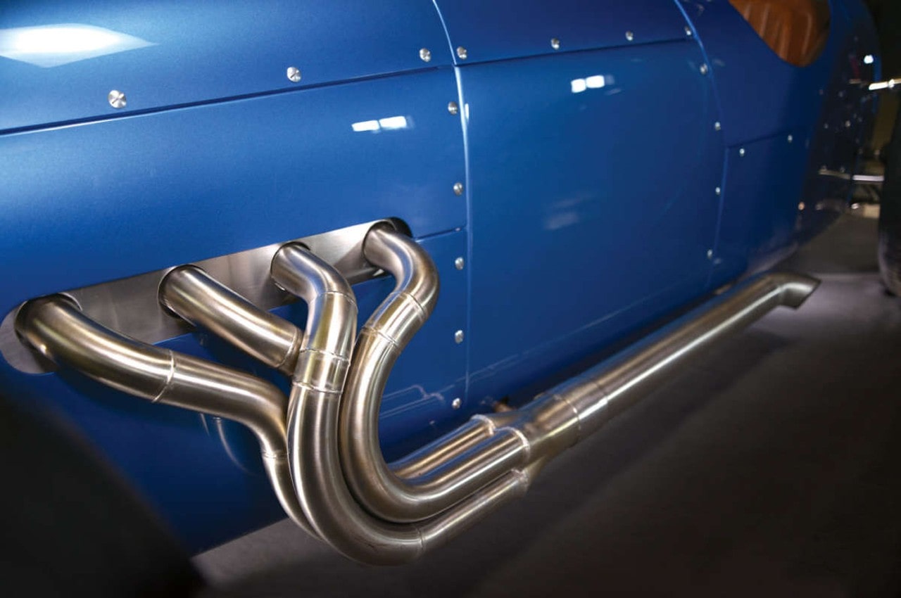 Tous les châssis sont soudés TIG dans l’usine de Three Lakes, dans le Wisconsin. Les performances et la fiabilité éprouvées du V8 LS3 de Chevrolet Corvette qui motorise la Troy-Indy-Spécial en sus de la maniabilité de cette voiture de sport contemporaine, permettent de reconstituer l’empreinte des courses Indy classiques d’antan.