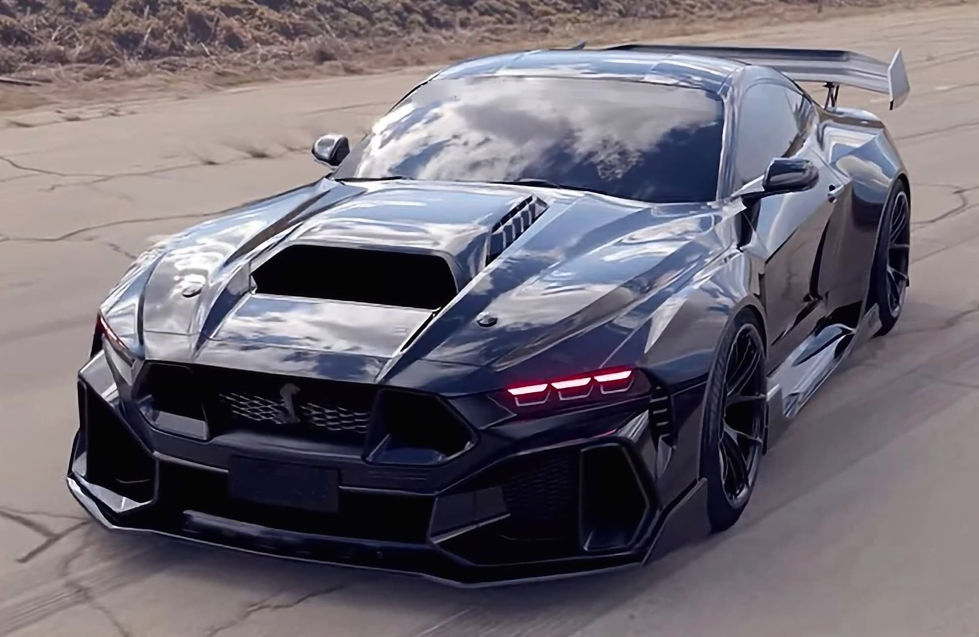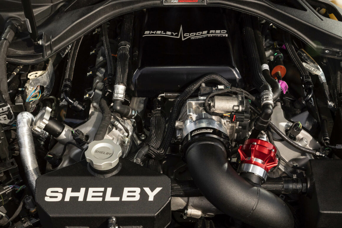 Oubliez toutes les Muscles-Cars que vous avez en références. Il s’agit ici du Top of the Top. avec 1.000 chevaux et 300km/h. La nouvelle Mustang Dark Horse 2024 ne délivre que 500cv… Triste chose… Cette Shelby est arrivée pas tout à fait en feu, mais suffisamment fumante pour que toute l’équipe de ChromesFlammes/Gatsby se pose des questions à son sujet.