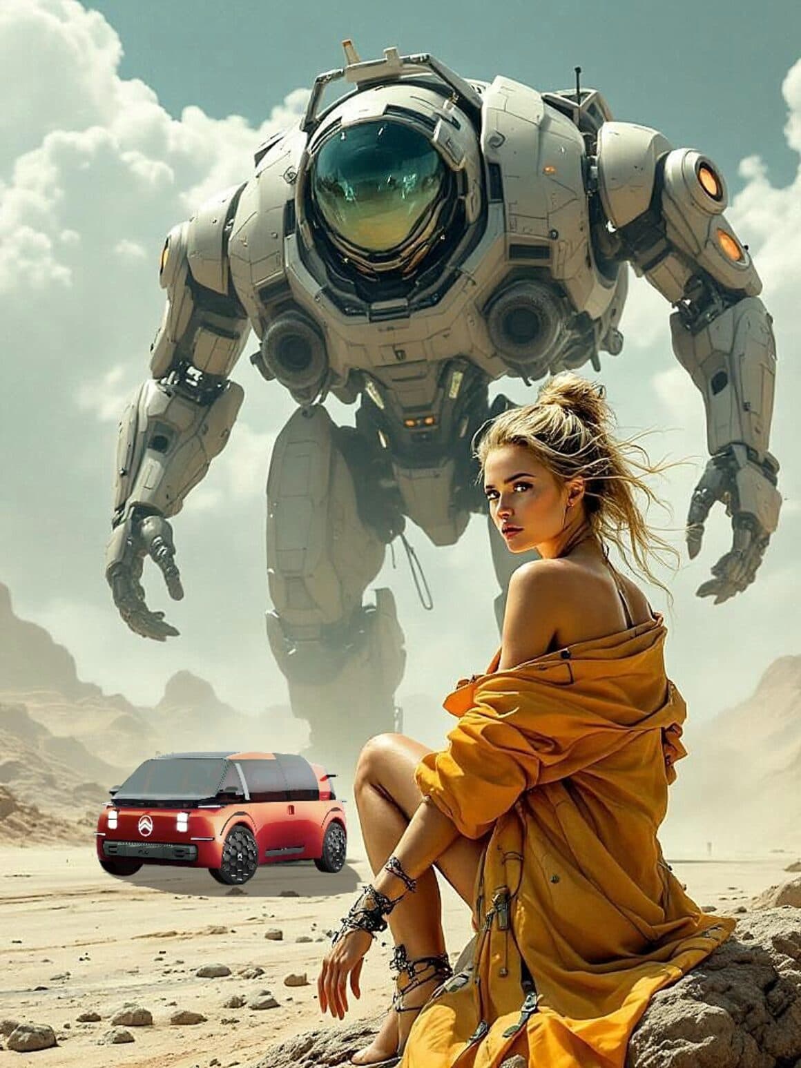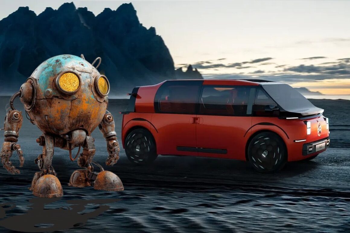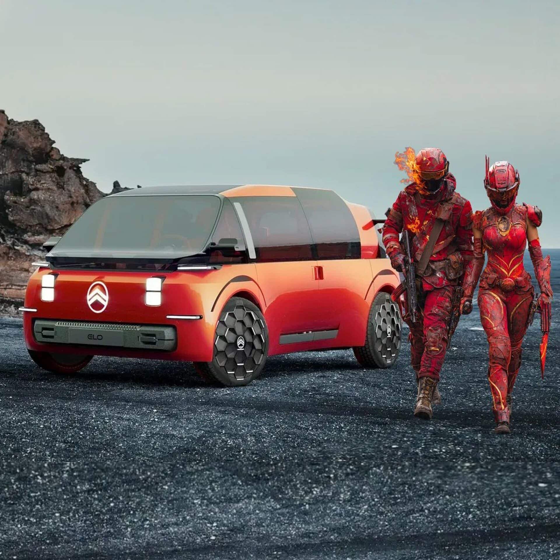 Il s’agirait du petit frère du concept Oli présenté en 2022. 10 cm plus court et 20 cm plus bas que ce dernier, il mesure en effet 4,1 m de long pour 1,7 m de haut. Un gabarit équivalent à celui des Citroën C3 et ë-C3 actuelles. Comme cette dernière ainsi que le concept Oli, la conceptuelle Elo est 100 % électrique et est propulsée par un unique moteur positionné sur son train arrière. Malheureusement, on ne sait rien d’autre de sa fiche technique, mais qu’importe, car le véritable tour de force d’Elo, c’est son habitacle ! Ce micro-véhicule électrique est avant tout un “Concept-car- Citroën-Oli”, au design futuriste”, qu’on voudrait présenter roulant sur une plage au coucher du soleil… Mais c’est avant tout un super “Concept car Citroën avec arrière orange futuriste et logo Citroën, moderne et innovant”, tout en étant également une “Citroën concept car rouge sur route déserte entourée de montagnes majestueuses”…