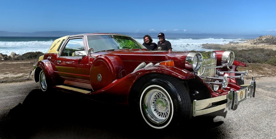 J’en reviens à Monterey 2025… Avoir ramené une Zimmer Golden Spirit à Monterey, ce fut comme débarquer à un concours d’élégance en peignoir Versace et pantoufles en croco : ça ne se fait pas, mais ça laisse une empreinte… Une empreinte de chrome, de cuir, et de foutage de gueule assumé…. Car dans ce monde où les McLaren se vendent comme des NFT périmés et où les Ferrari pleurent leur gloire passée, la Zimmer Golden Spirit est un doigt d’honneur roulant à l’esthétique consensuelle. Et c’est tant mieux. Parce qu’une Zimmer, ça ne se fabrique pas comme une Clio diesel dans une usine roumaine. Ça se rêve, ça se fantasme, ça se dessine sur une serviette imbibée de whisky, entre deux crises d’égo et trois appels à son comptable véreux.