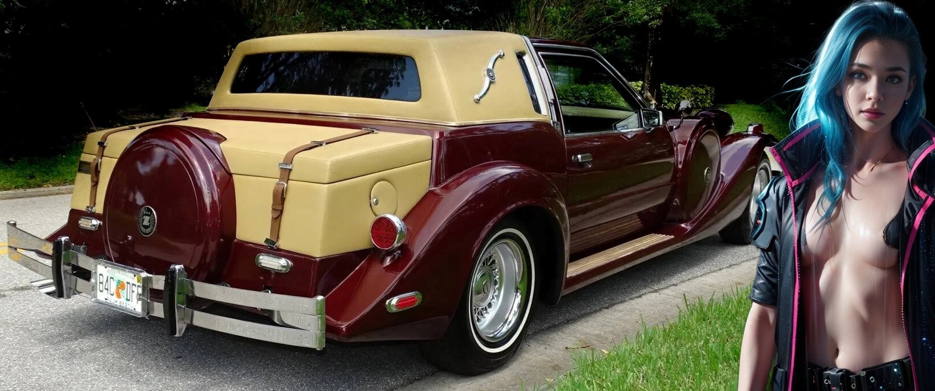 Dans un monde où les McLaren se vendent comme des sextoys de milliardaires, j’ai donc décidé de ramener une Zimmer Golden Spirit à Monterey. Oui, une Zimmer. Une voiture qui ressemble à un croisement entre un cercueil chromé et un fantasme de vieux mafieux sous Viagra. Une voiture qui donne l’impression qu’un aristocrate cocaïné des années ’80 a fait l’amour à une Mustang dans un musée de cire… La Zimmer Golden Spirit, c’est ce qui arrive quand un designer sniffe du Xanax en regardant “Autant en emporte le vent”. Elle a des ailes dignes d’un Boeing, des pare-chocs qui pourraient servir de bancs publics, et un intérieur cuir qui sent le cigare frelaté et le divorce… J’explique… Zimmer Motor Cars était un fabricant d’automobiles néo-classiques…