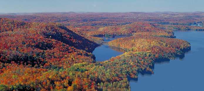 En chemin, on survole le réservoir Baskatong et les gorges de la rivière Gatineau puis le Cabonga, immense lac réservoir.