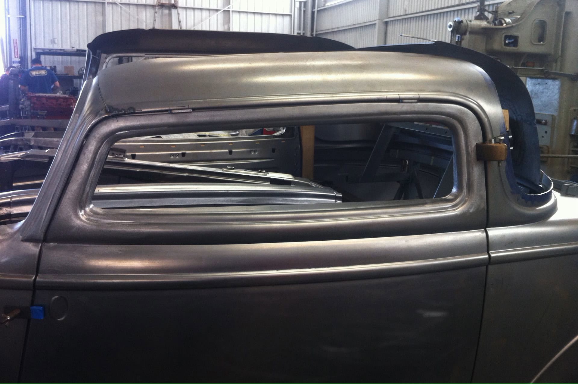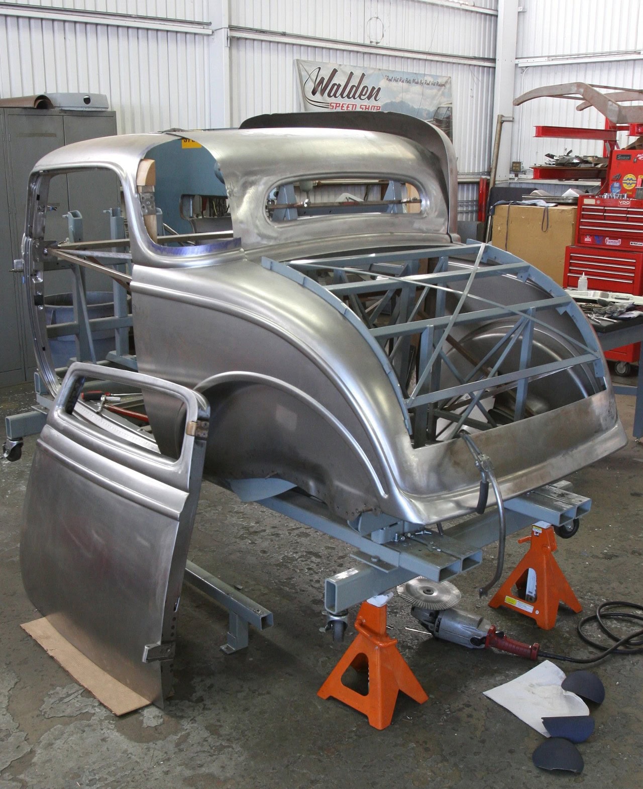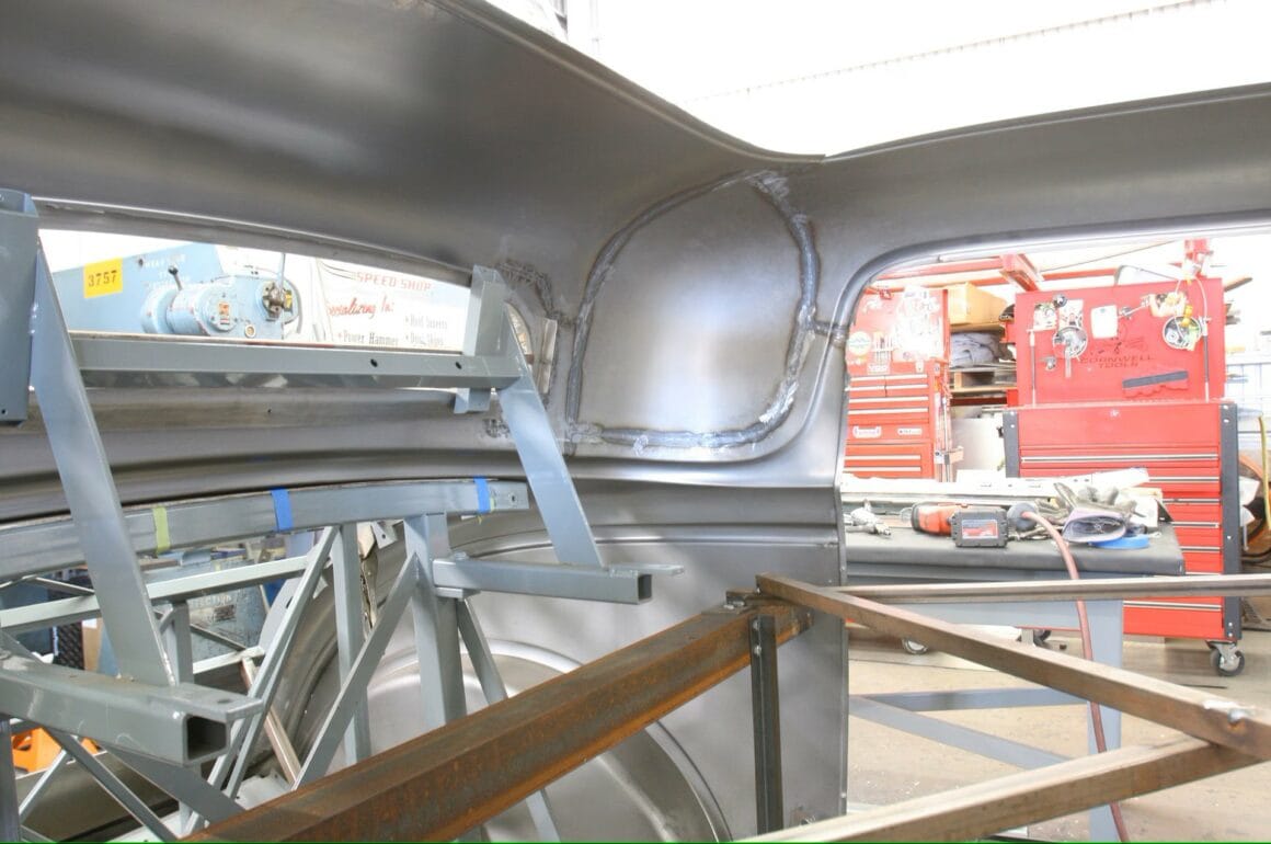 Bien que nous ne puissions pas être au Walden Speed Shop pendant toute la durée de la construction de deux ans, des photos de la carrosserie de ce coupé en train de s’assembler ont été réalisées. Remarque : WSS dispose d’un dispositif substantiel qu’ils utilisent pour assembler les carrosseries Brookville, avec des sous-structures pour assurer un alignement cohérent. Il est également intéressant de noter que les portes sont coupées et suspendues comme première étape du processus, fournissant un point de référence au fur et à mesure de l’avancement des travaux… Voilà…