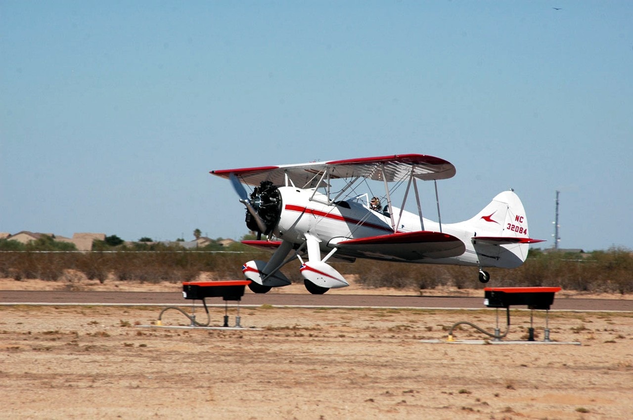 Le Waco part en une élégante glissade droite pour compenser la dérive, je suis “Clear” au posé, je retiens le chiffre de, ouillloullou… 15 nœuds…