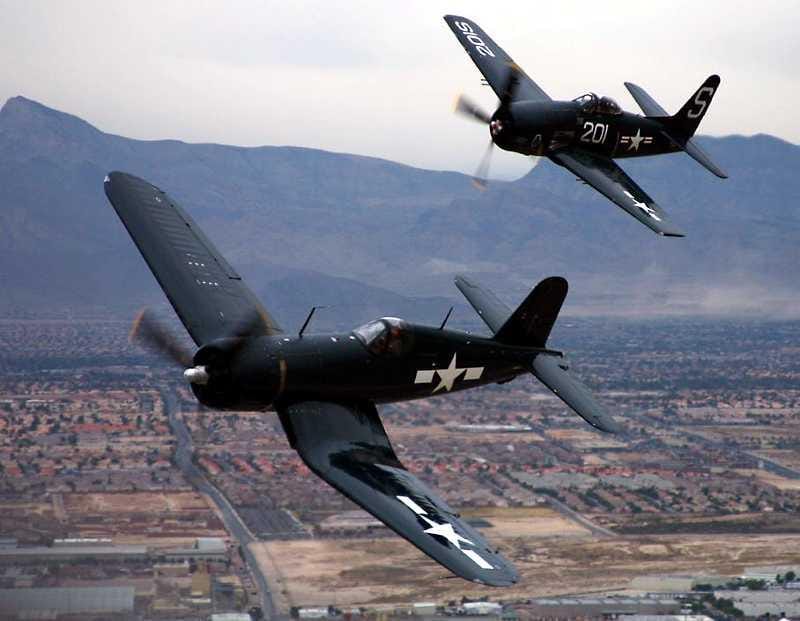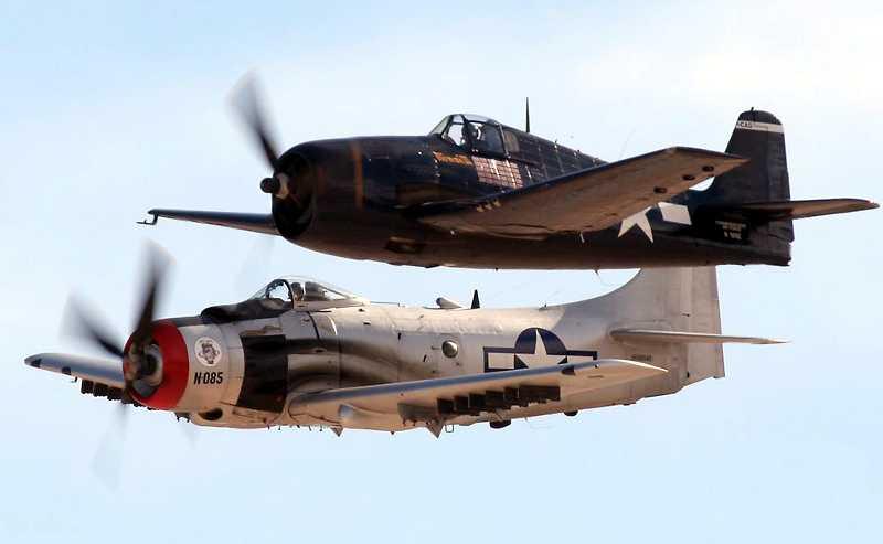 Well, how about an F4U and an F8F Bearcat ? They’re both naval fighters, but the Corsair was manufactured by Chance-Vought and the Bearcat by Grumman, the most successful builder ever of naval aircraft.
