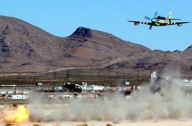 Here you can see it during a simulated strafing run set up by Chris Rainey and his merry band of pyrotechnic pranksters.