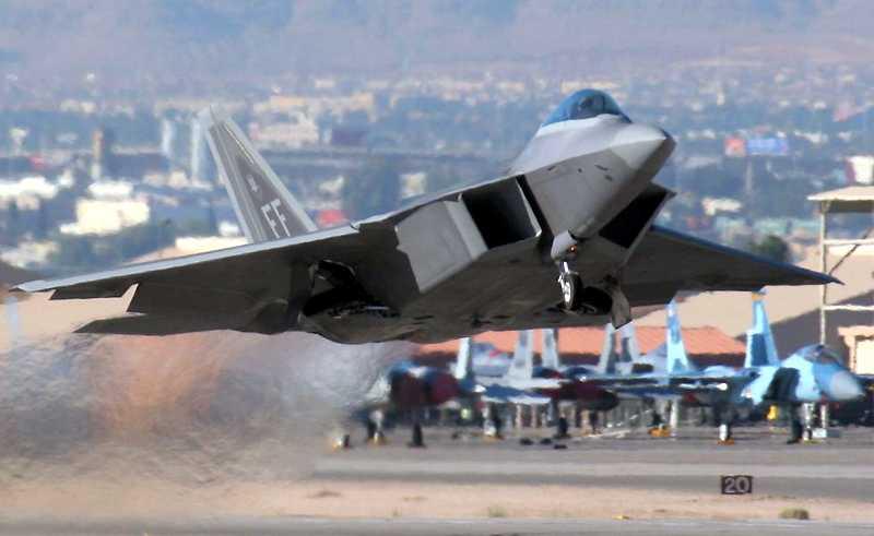 It was an impressive sight to see a flight of four F-22 Raptors head out to the ranges, including this fellow who didn’t waste any time pulling up his undercarriage after takeoff.