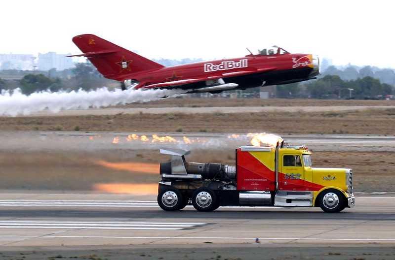 Me voilà en finale…, deux glissades, arrondi bien maintenu, et…, j’aperçois un Camion américain modifié en Truck-Dragster qui effectue un test d’accélération pour le meeting de demain…, piting…, c’est la fin !