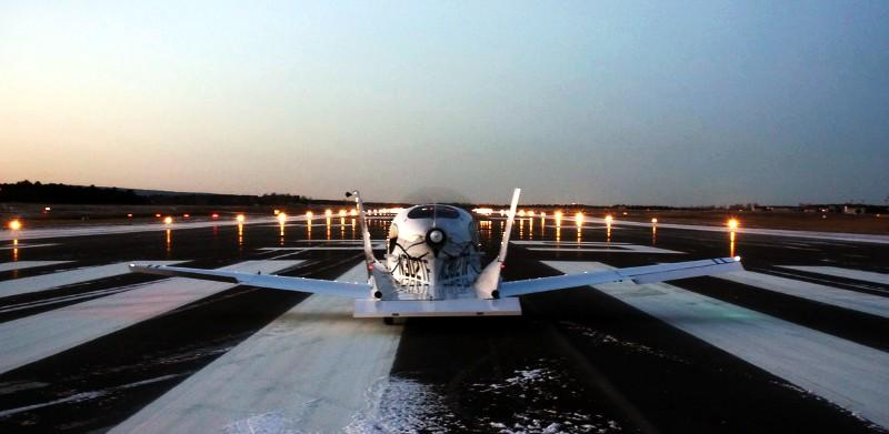 Freins lâchés, l’autovion s’ébroua puis accéléra progressivement.