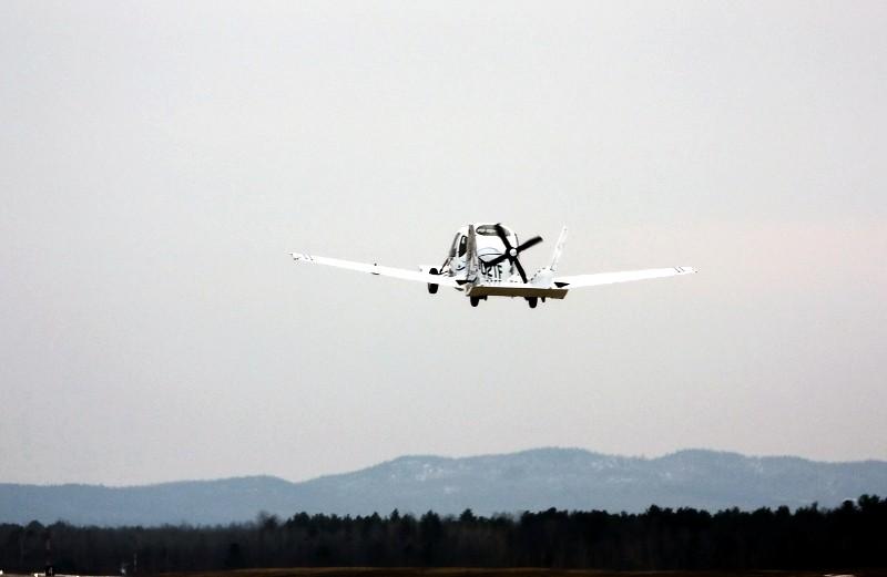 Il se leva comme un diable lorsqu’il aperçut l’autovion Terrafugia “Transition” en approche.