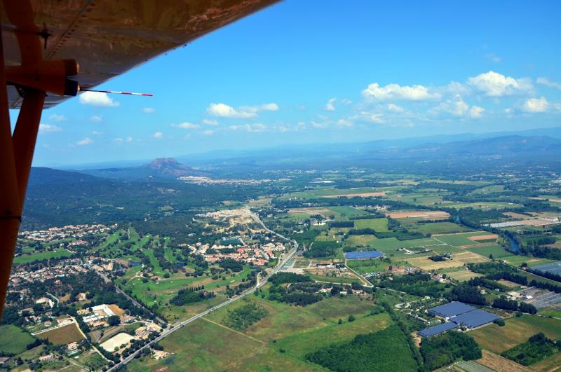 Je me suis quand même inscrit pour un vol au dessus de ma nouvelle zone de vie de loisirs de retraité, prévoyant que Blacky, interdit de vol par sécurité (sic), resterait à l’ombre avec boisson fraîche à disposition (de l’eau) et croquettes…