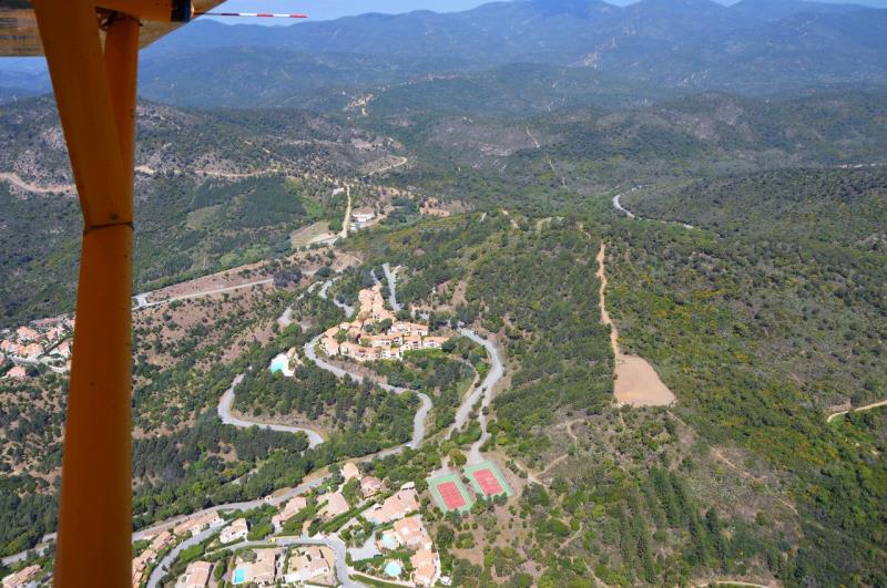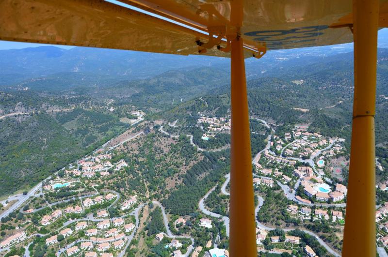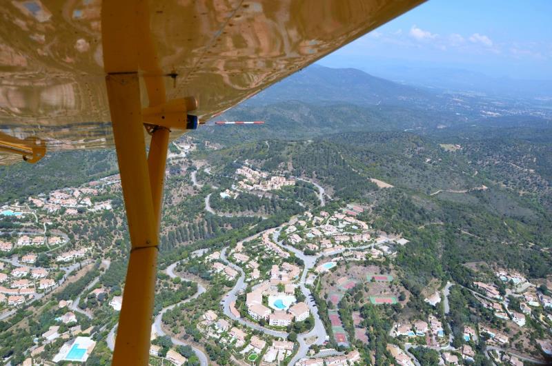 Toutefois, le frêle coucou est en surpoids, il dandine et se met en crabe tout en peinant à prendre de l’altitude, tandis que le pilote me dit de me pousser encore un peu davantage vers le vide pour pouvoir manœuvrer “le manche”…3/4 d’heure de pure folie…, le résultat se voit sur les clichés sélectionnés, certains vous paraitront saugrenus, mais en fait ils sont nécessaires dans le cadre d’un dossier immobilier qui ne vous concerne pas…