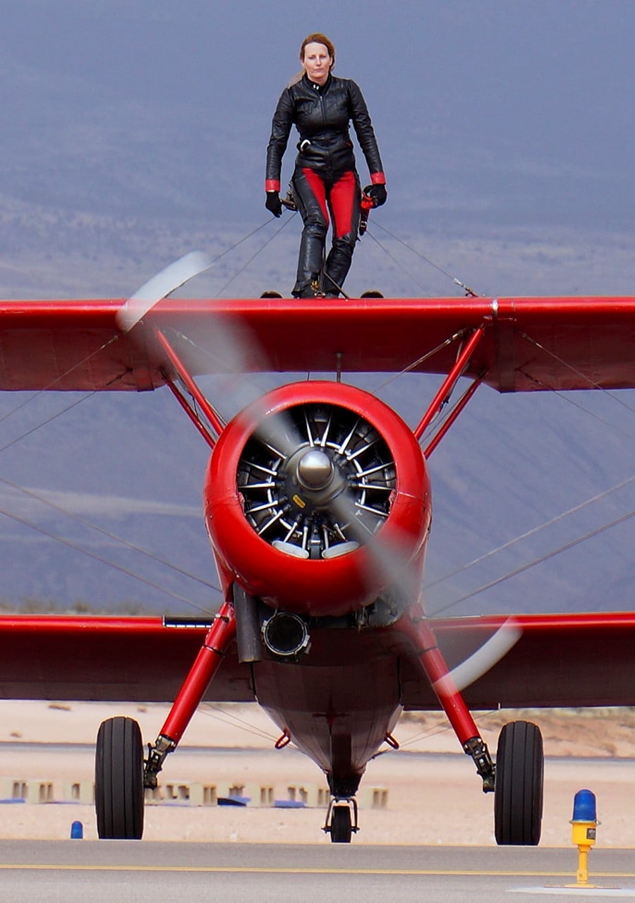 Carol est une wing walker, une professionnelle qui marche sur les ailes d’un avion en plein vol.