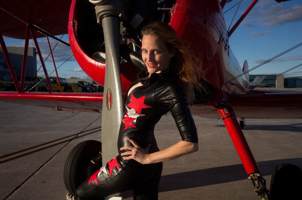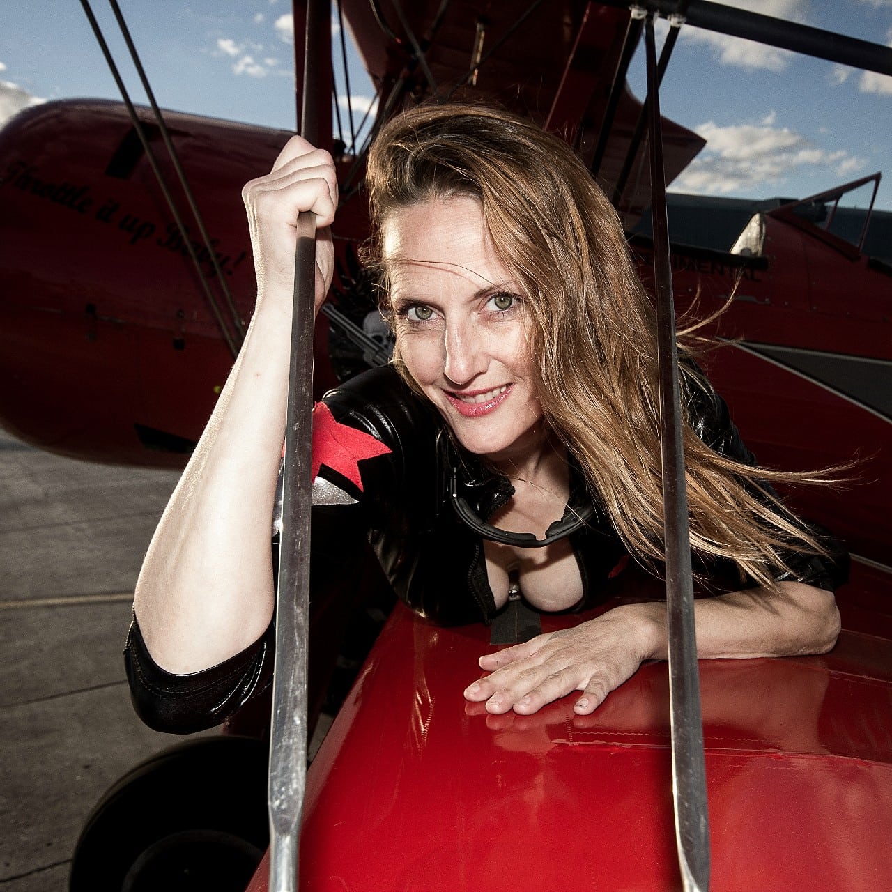 – Aussi loin que je me souvienne, j’ai toujours voulu être aviatrice.. Si bien que lorsque j’ai atteint l’âge de la majorité, j’ai quitté mon premier job pour m’acheter un avion. Petit à petit, j’ai appris à le piloter et à sauter en parachute. Puis j’ai découvert le wing walking, en apercevant une pub à la télévision pour un show de voltige aérienne local. C’était la première fois que je voyais ou que j’entendais parler de cette discipline ; ça a été le coup de foudre. Un frisson incroyable m’a parcouru l’échine et depuis ce jour, le wing walking fait partie de ma vie. Il m’a fallu sept ans pour trouver un mentor. C’est une industrie minuscule dans laquelle il n’est pas facile d’entrer.