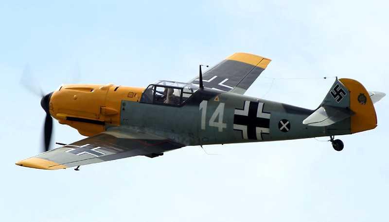 This is a fairly early Bf109E “Emil” model rather than the later and slightly more common Bf109G “Gustav“. The black cross on this plane’s fuselage signifies that it participated in the Spanish civil war in the German Kondor Legion.