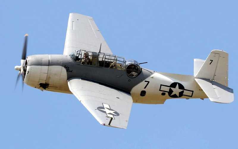 Two American Avenger torpedo bombers flew at the show, this one in a North Atlantic paint scheme and another one in a rather unusual and anachronistic pre-war training color scheme.