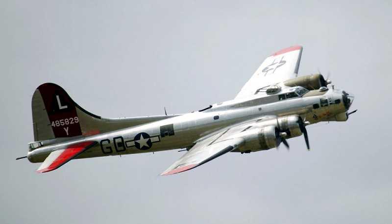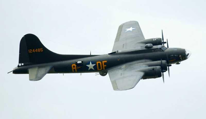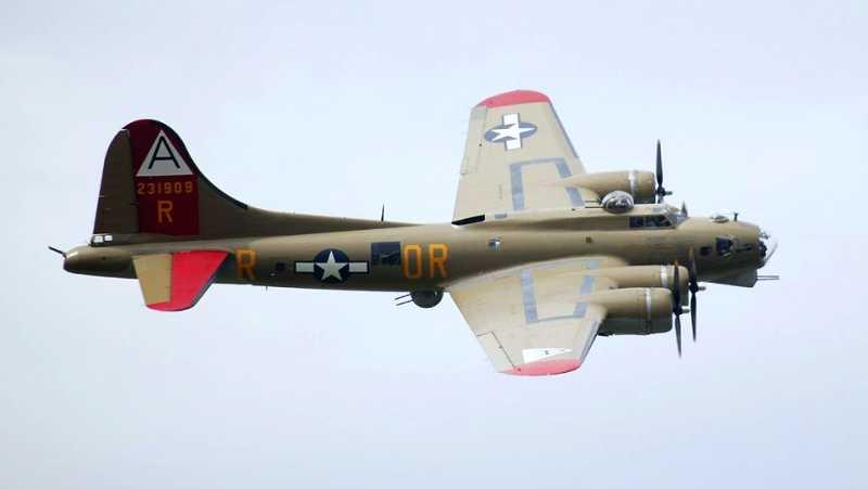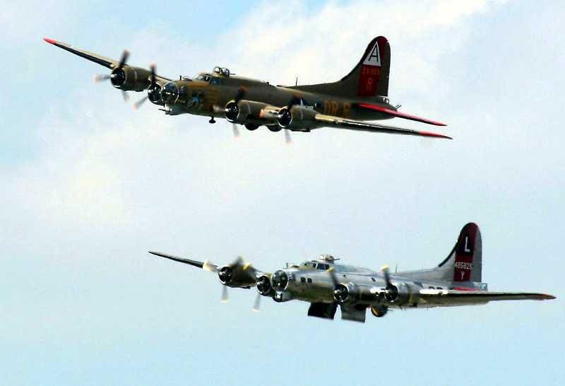 The Commemorative Air Force’s B17G “Sentimental Journey” served in the Pacific during the war, later becoming an air-sea rescue plane and finally a fire-fighting “borate bomber” in California.