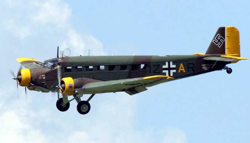 Sheathed with the corrugated metal sheeting characteristic of most pre-war transport aircraft produced by the Junkers company, the Ju-52 was used primarily as a transport, but also operated as a bomber during the Spanish civil war and during world war two acted as a minesweeper, detonating Allied magnetic mines by flying low over the water while fitted with a huge energized hoop mounted under the aircraft.
