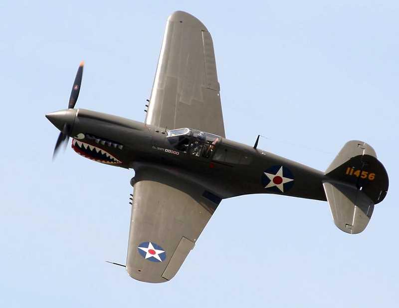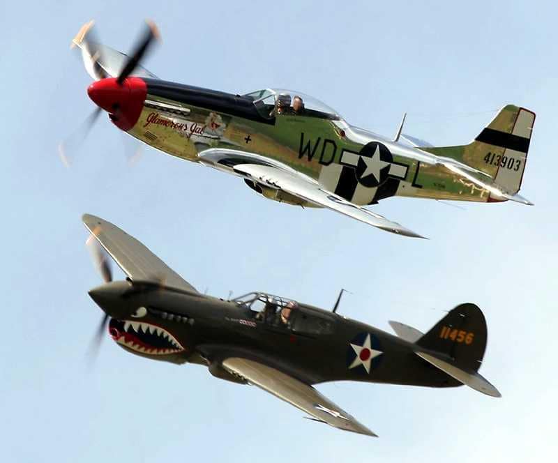 Rounding out the list of world war two propeller-driven fighters, no fewer than five P-51 Mustangs flew, as well as this far less common P-40 Warhawk.