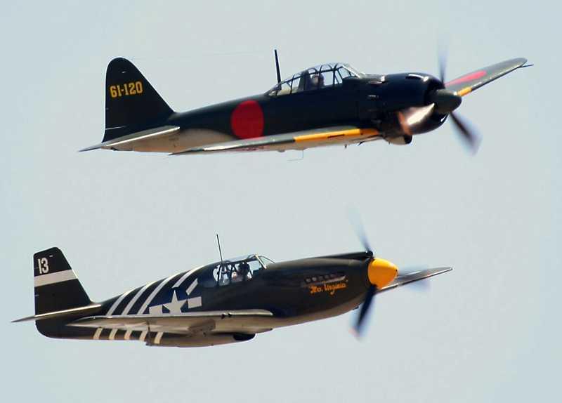 It’s a bit incongruous since the Mustang entered service considerably later than the Zero and was an air force type, whereas the Zero was primarily a naval fighter.