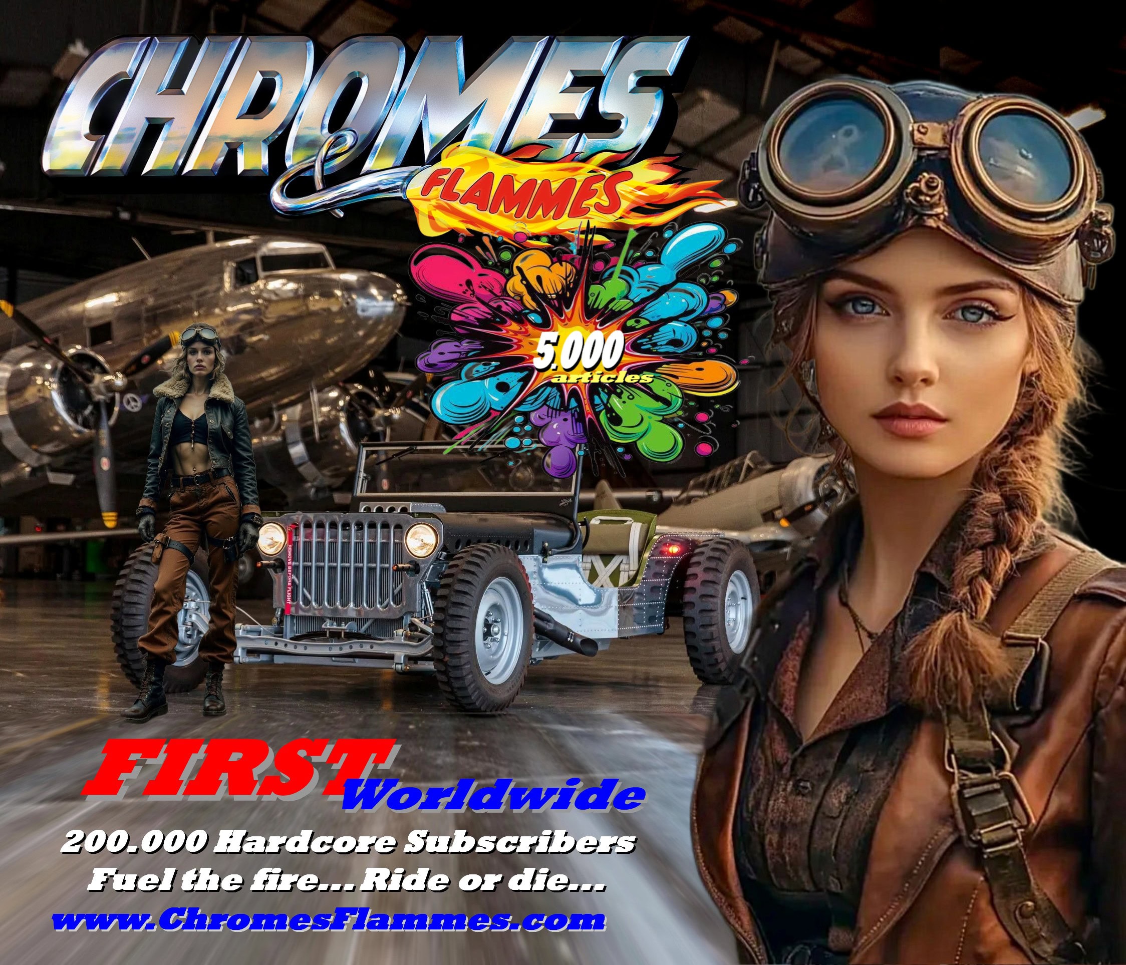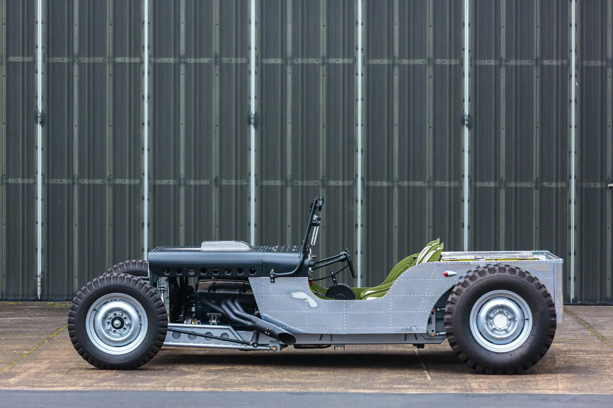 Ce Hot Rod de style Willys MB a été construit pour célébrer la victoire de Donald Trump pour son second mandat… Je doute qu’un tel enthousiasme soit dupliqué (et même duplicable) en Europe à la gloriole d’Ursula Von der Leylen en version Européenne ou d’Emmanuel Macron en version Française… La carrosserie de cette Zeepster, est en aluminium et arbore une peinture et un intérieur inspirés des avions militaires de la Seconde Guerre mondiale.