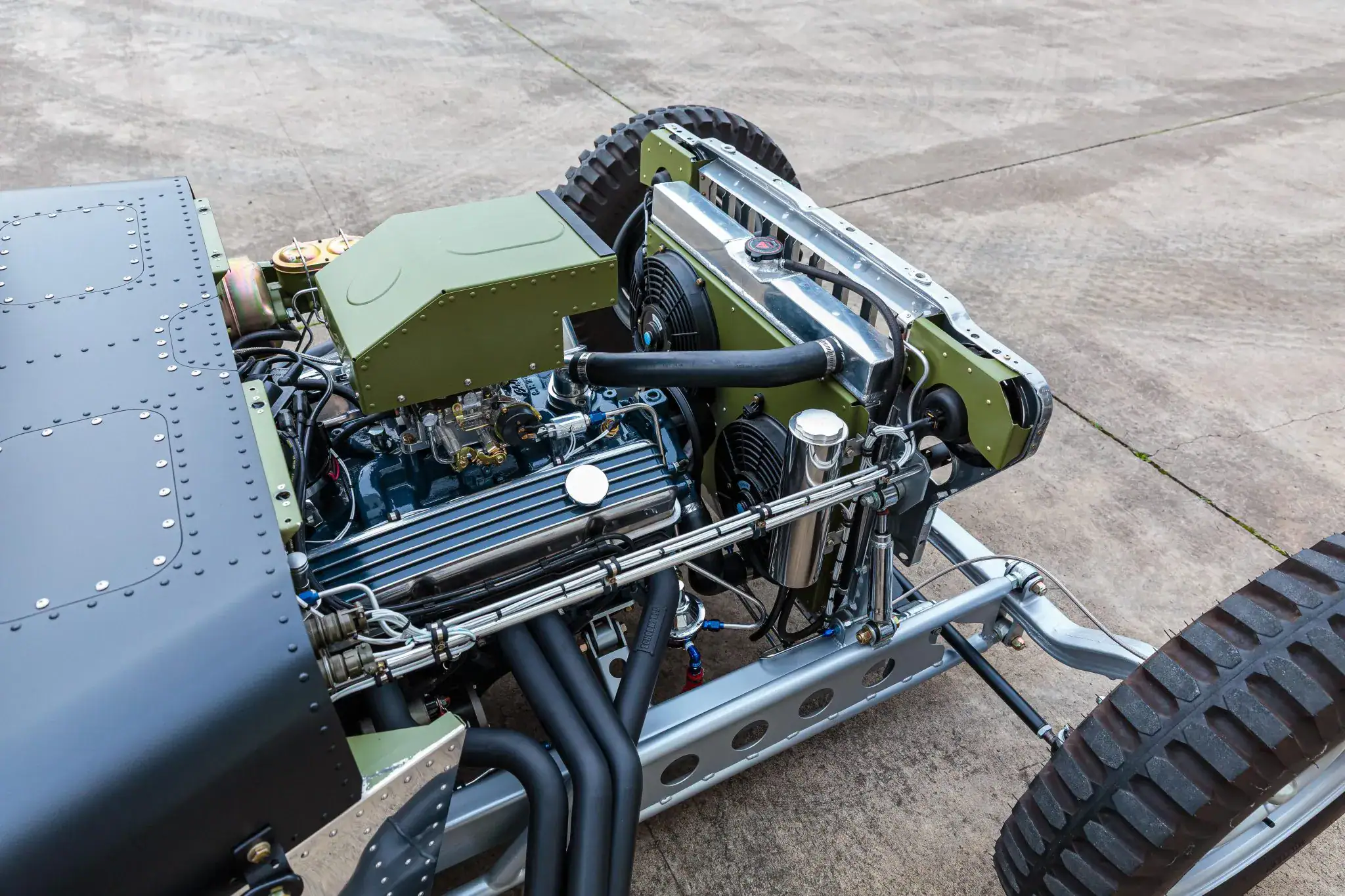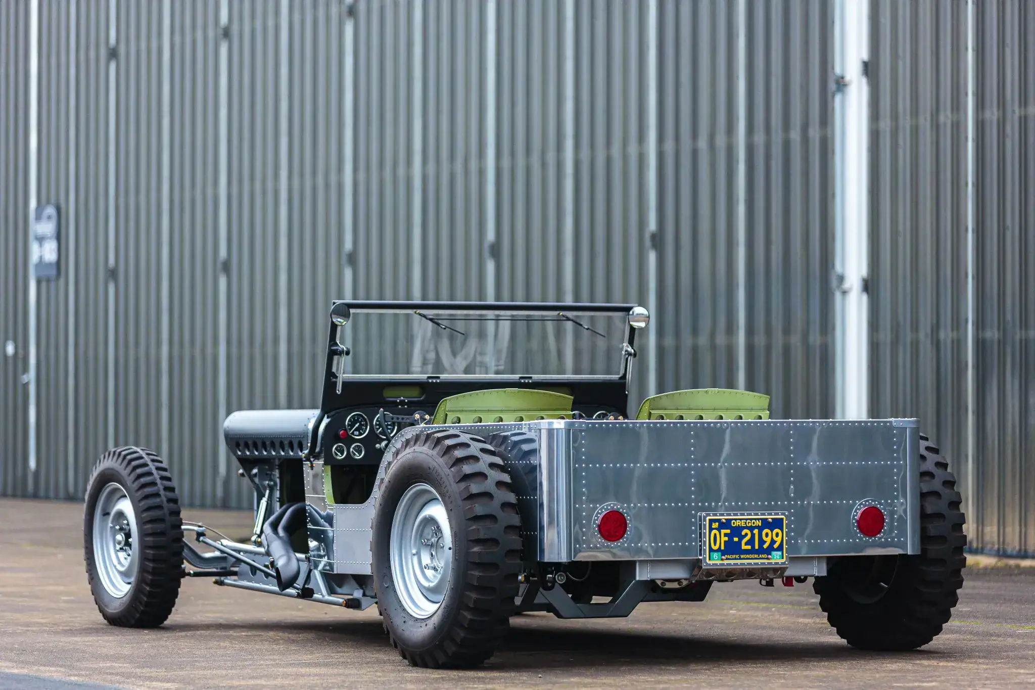 Des disjoncteurs à double interrupteur remplacent les fusibles. Le radiateur en aluminium est refroidi par deux ventilateurs électriques aspirants. Les deux réservoirs de carburant en forme de bombes sont reliés à un réservoir principal. La transmission automatique à trois vitesses TH350 est reliée à un pont arrière à 12 boulons avec un rapport de 3,73. Le véhicule est immatriculé comme un WLLS de 1942 avec numéro VIN attribué par l’Oregon : #ORN02720#…