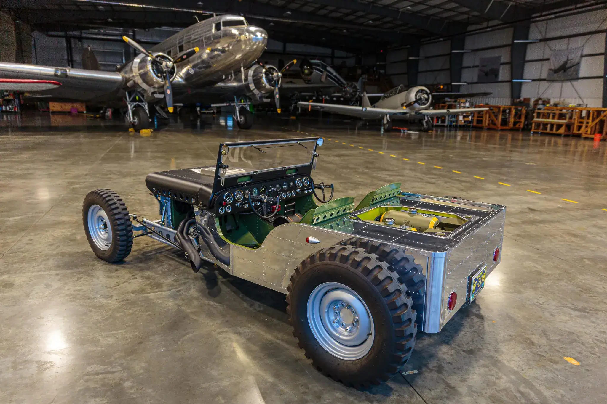 Dénommé “Zeepster” et surnommé “Warbird Jeep”, ce Hot Rod est équipé de deux volants avec instrumentation symétrique et d’autres équipements sur le thème de l’aviation tels des instruments de vol fonctionnels, des faisceaux de câbles à déconnexion rapide, deux réservoirs de carburant en forme de bombes positionnés dans “la soute aux explosifs”, des feux de position multicolores et des sièges de bombardier avec coussins, chacun en forme de parachute dorsal.