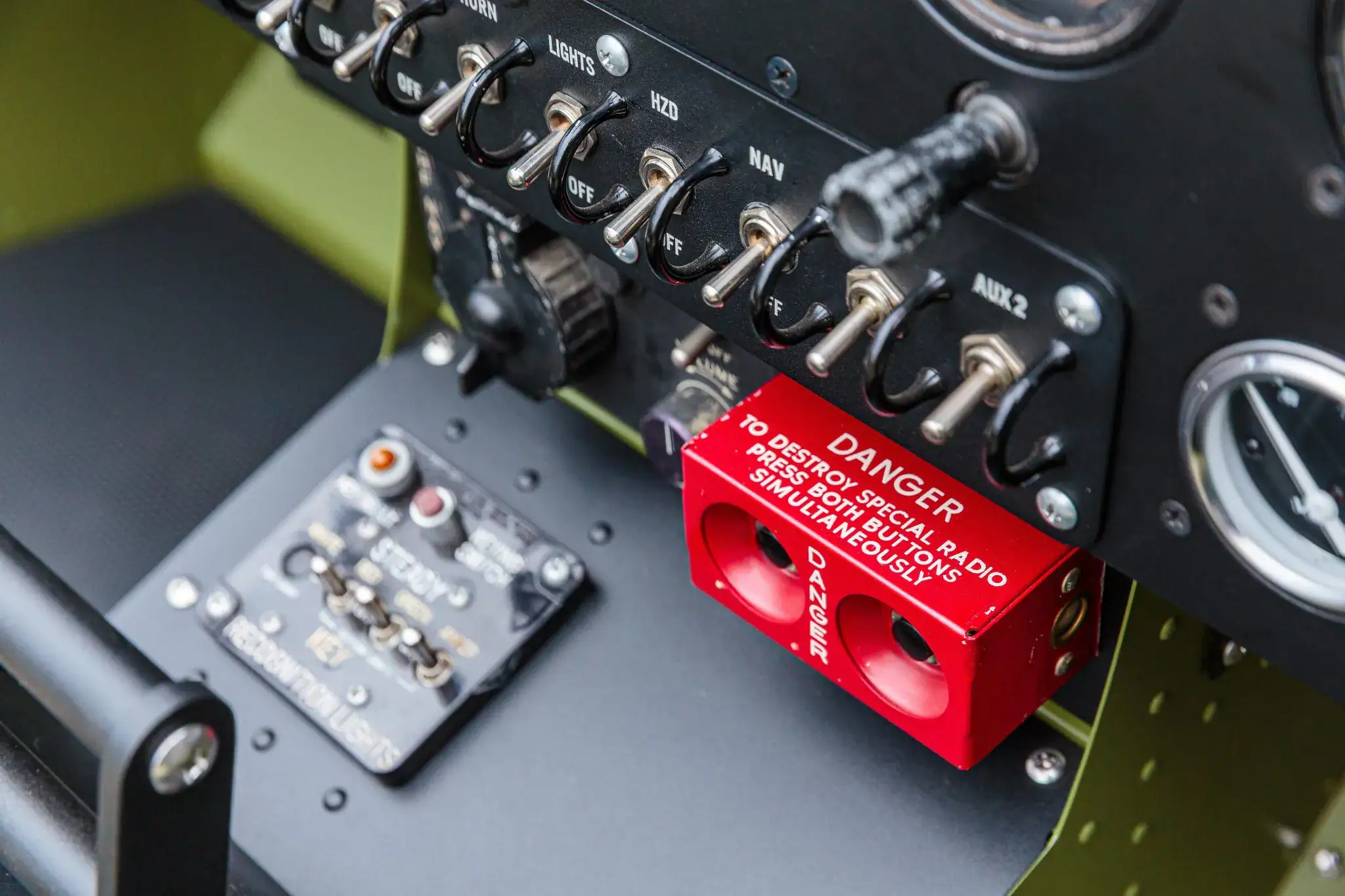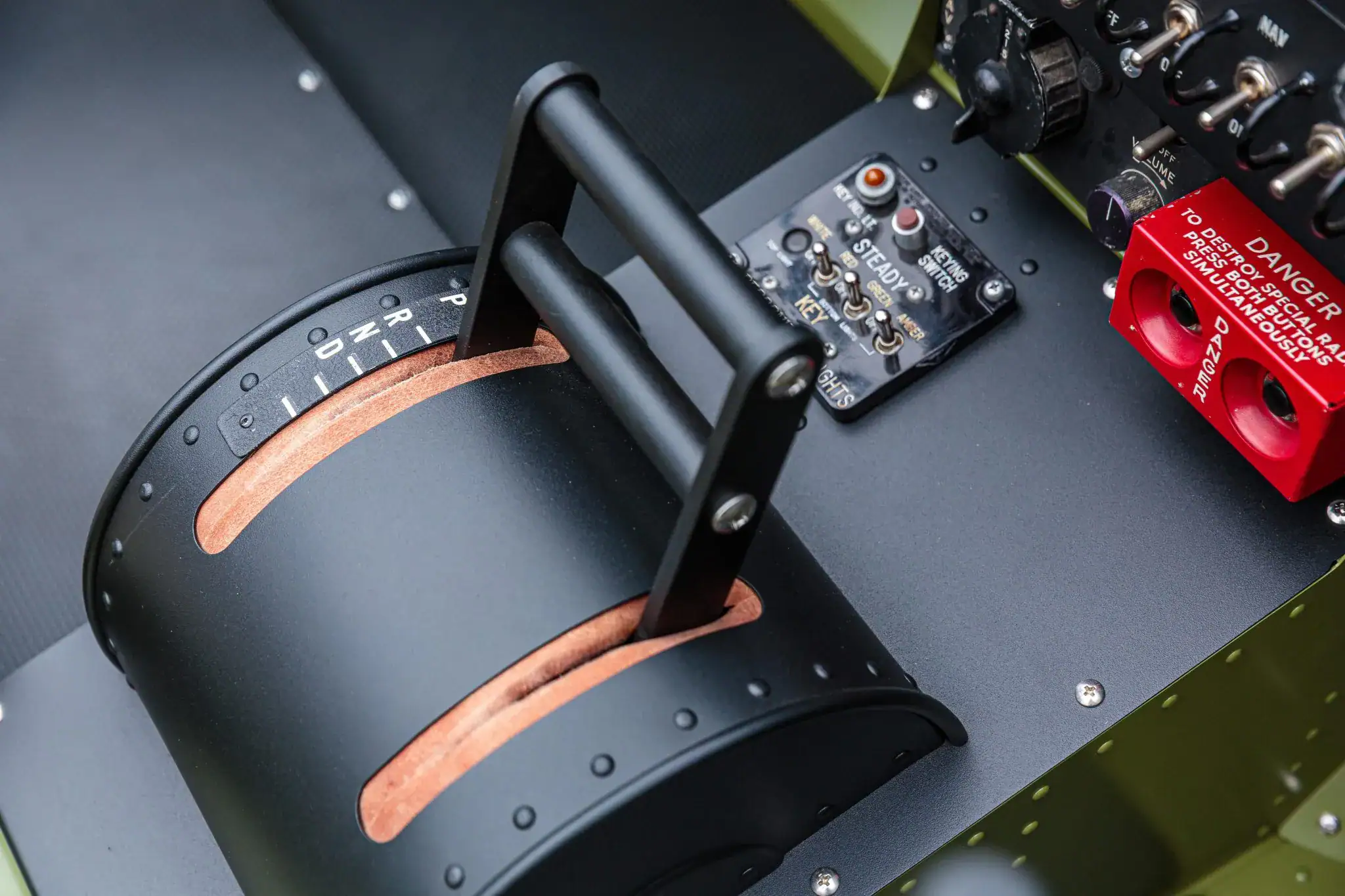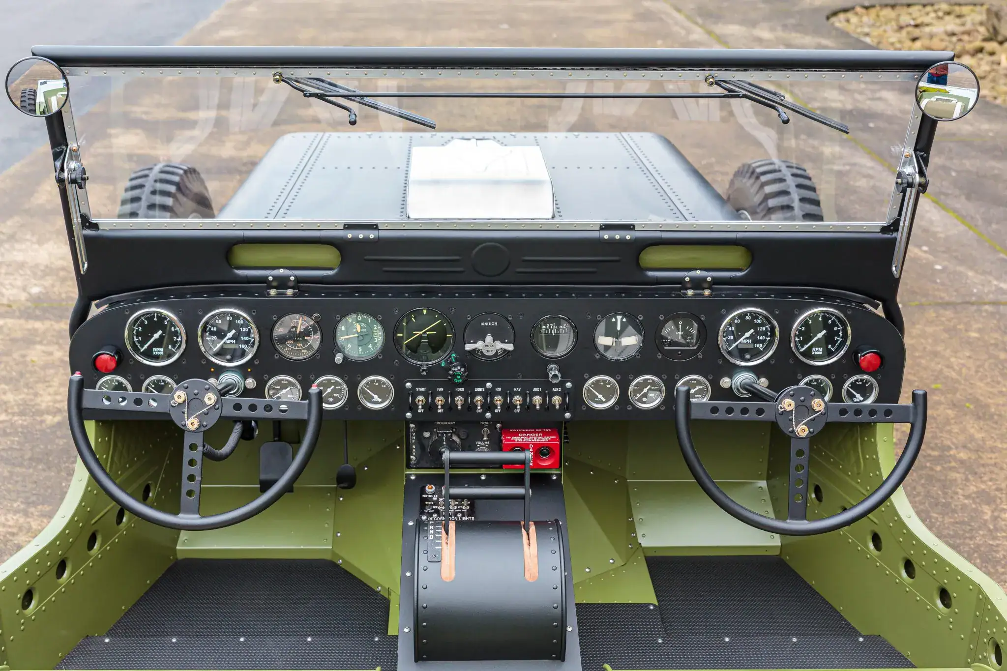 Des boutons poussoirs situés sur le volant du coté conducteur actionnent les clignotants. Un altimètre, une boussole et un anémomètre fonctionnels sont montés au centre du tableau de bord, ainsi qu’une radio militaire, les commandes d’accélérateur et un coupe-circuit d’allumage. Deux jeux d’instruments supplémentaires comprennent un compteur de vitesse gradué jusqu’à 257 km/h, un compte-tours gradué jusqu’à 8.000 tr/min.