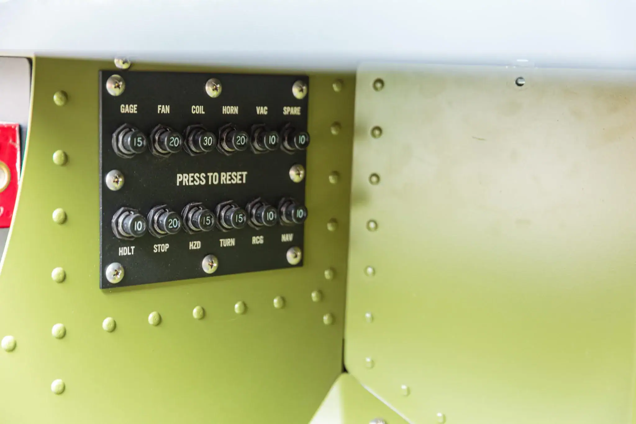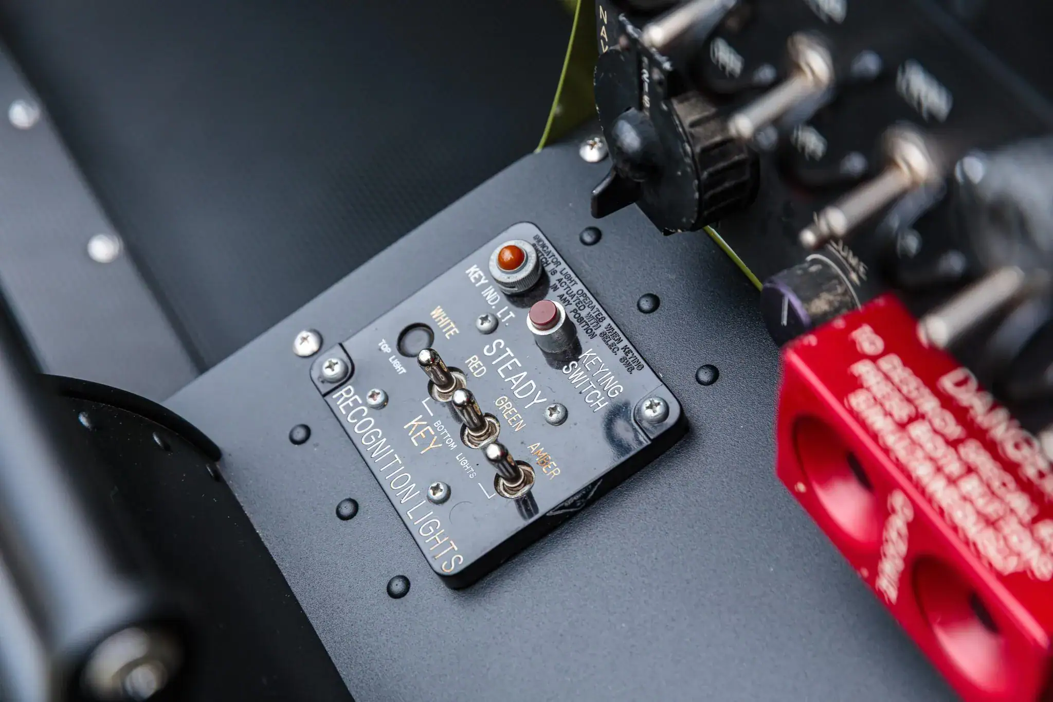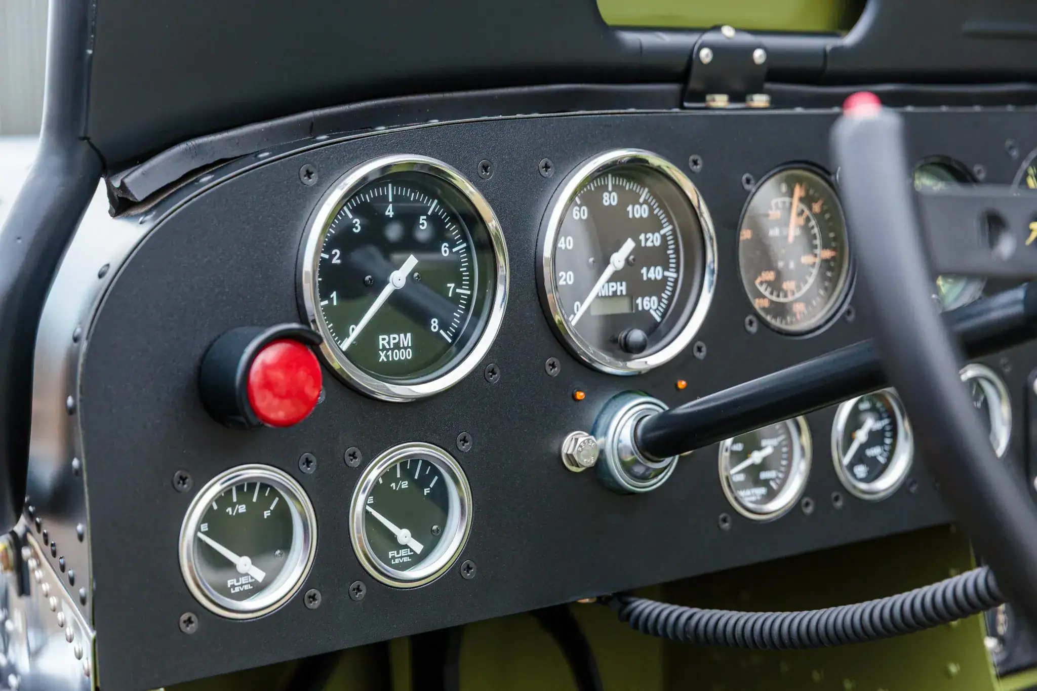 Des boutons poussoirs situés sur le volant du coté conducteur actionnent les clignotants. Un altimètre, une boussole et un anémomètre fonctionnels sont montés au centre du tableau de bord, ainsi qu’une radio militaire, les commandes d’accélérateur et un coupe-circuit d’allumage. Deux jeux d’instruments supplémentaires comprennent un compteur de vitesse gradué jusqu’à 257 km/h, un compte-tours gradué jusqu’à 8.000 tr/min.