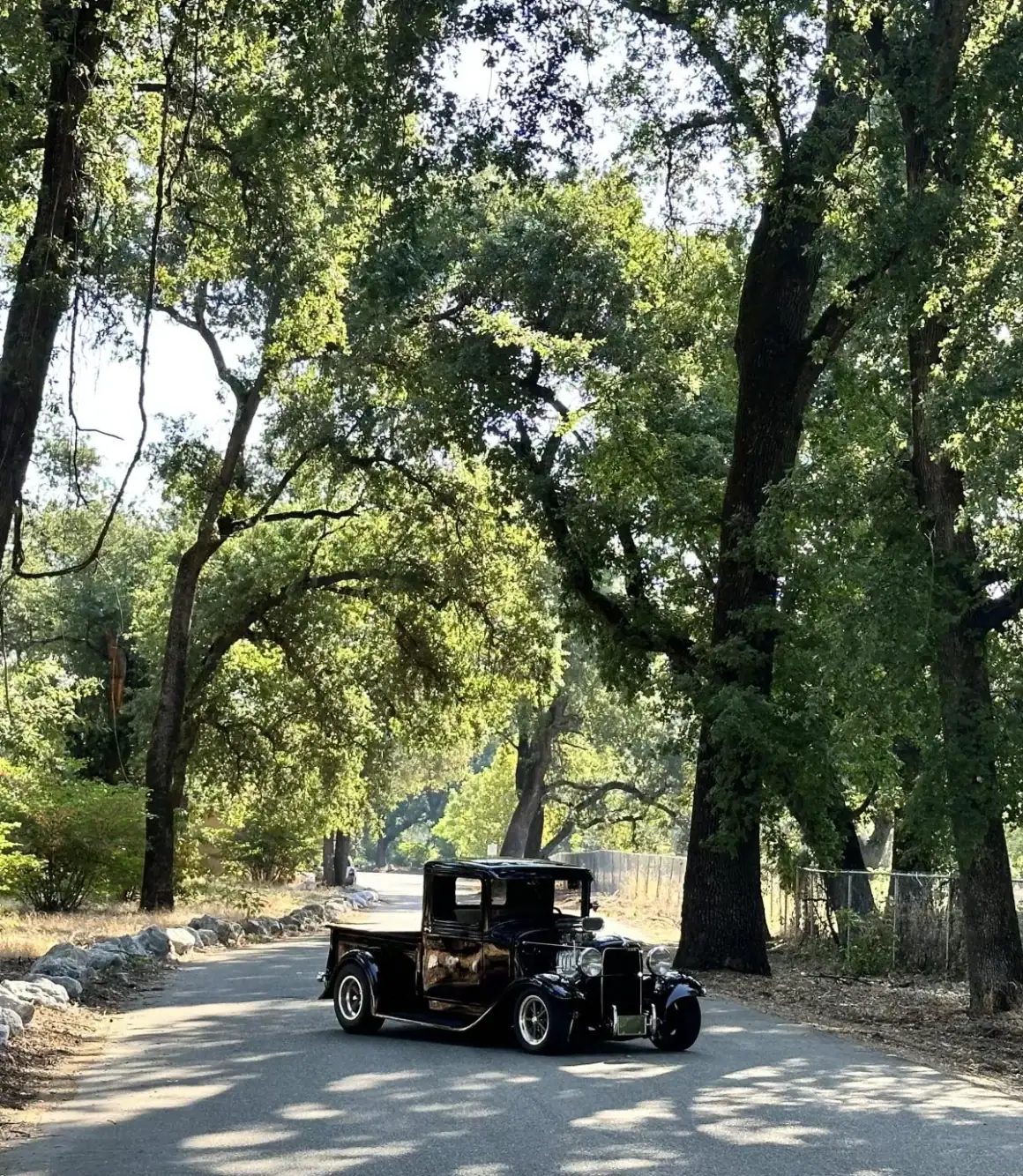 Le “Title” est californien, et il est “propre”, indiquant que c’est une Ford de 1934 répertoriée “VIN 18751019”... Les collecteurs à ailerons Sanderson sont reliés à un système d’échappement double, les caches de soupapes sont “à ailerons” de même que les respirateurs Mooneyes. Voilà… Prix espéré 45.000$… Dernier problème : trop de photos pour pas assez de texte !!! Pour tout positionner ce serait une photo par 2 lignes de texte…