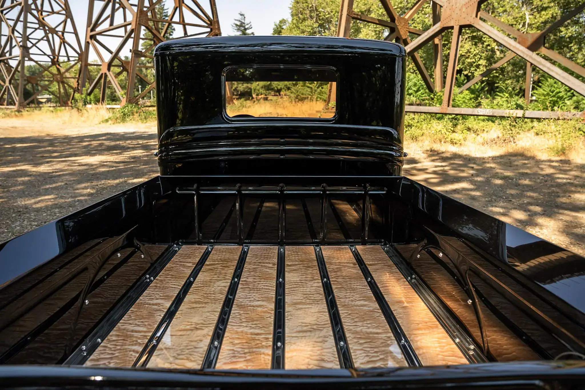 L’essieu avant est rigide avec quatre barres et un ressort à lames transversal. Le train arrière est triangulé avec coilovers réglables. La cabine est équipée de compteurs Mooneyes, de vitres électriques, d’une banquette sous forme de 2 sièges en 1 sur mesure et d’un volant banjo sur une colonne inclinable. La benne PU est en érable “bouclé”. Au cours de l’année écoulée, le compresseur a été reconstruit, l’intérieur a été remis à plat et les pneus décalés changés…
