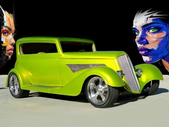 1932 Chevy Street Rod Encore un Hot Rod, en ce cas un Chevrolet 1932 (dont rien n’est d’époque), c’est un Sedan façon Coupé mais 2 portes (une complication qui a…