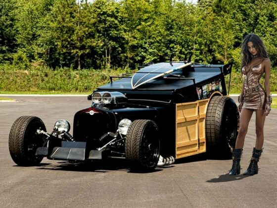 “La Brute” Renault Dauphine Kustom outlaw’60 “Powered by a mid mount Volkswagen MK4 Golf GTI VR6 2L8, 24-valve, 6-speed, 200 bhp @6,200 rpm, 195 Lb-Ft @3,200 rpm”… En 1956, Renault…