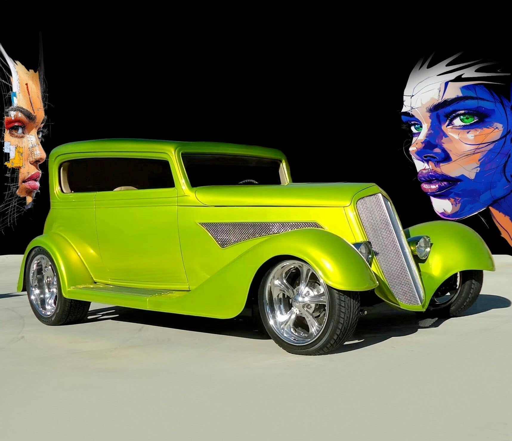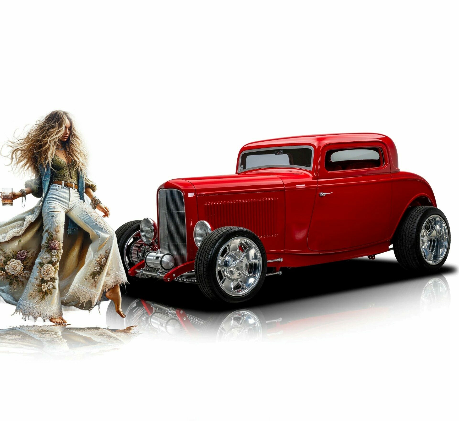 1932 Chevy Street Rod Encore un Hot Rod, en ce cas un Chevrolet 1932 (dont rien n’est d’époque), c’est un Sedan façon Coupé mais 2 portes (une complication qui a nécessité un…