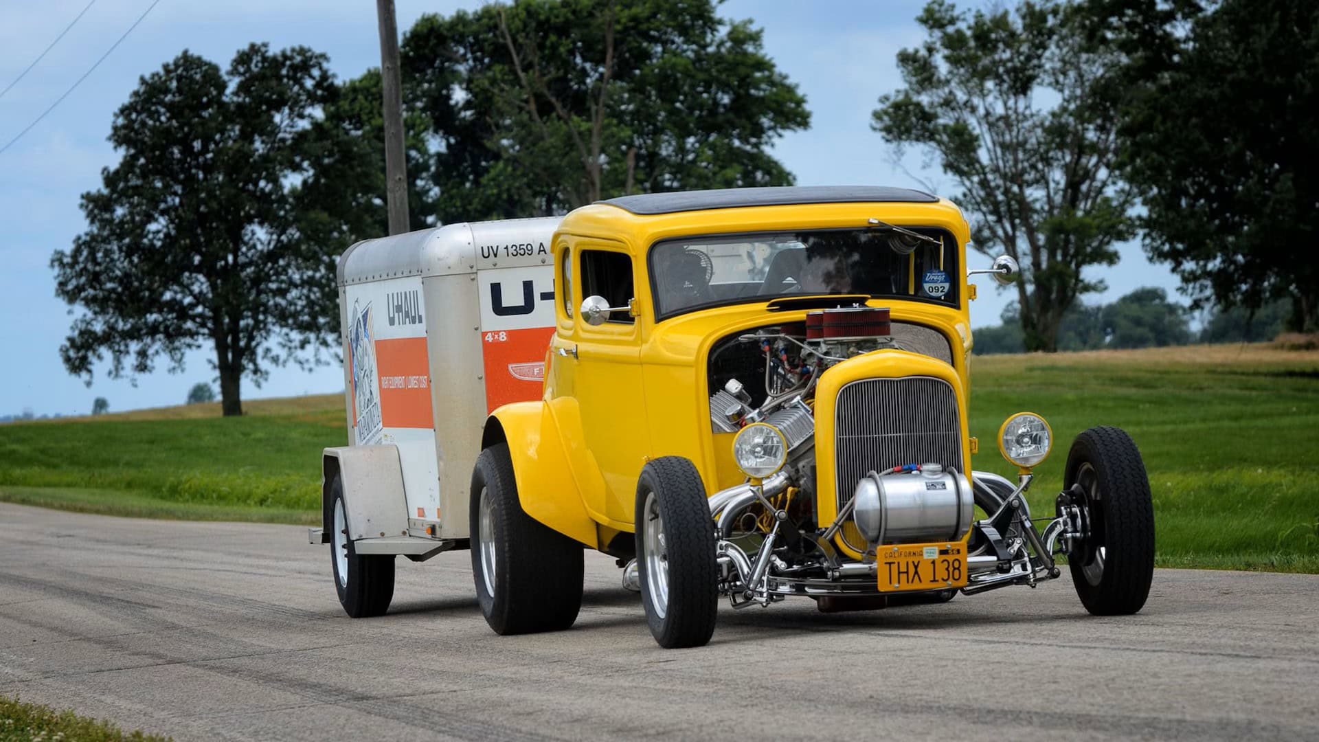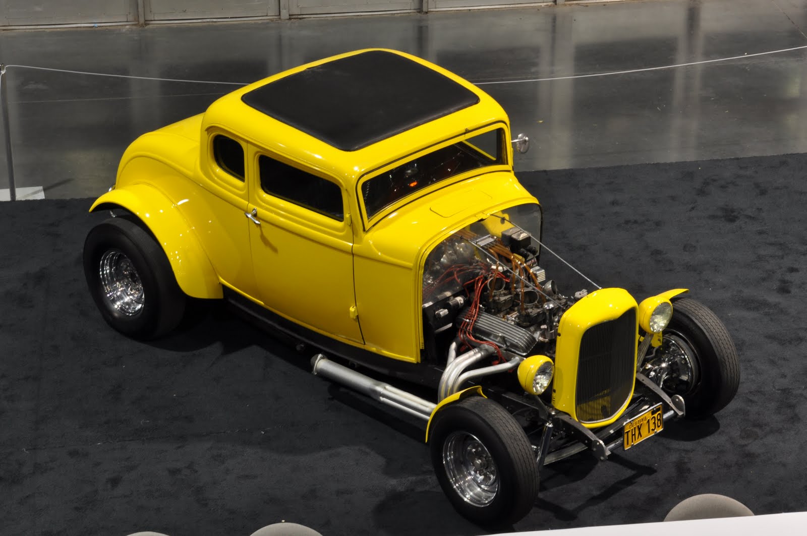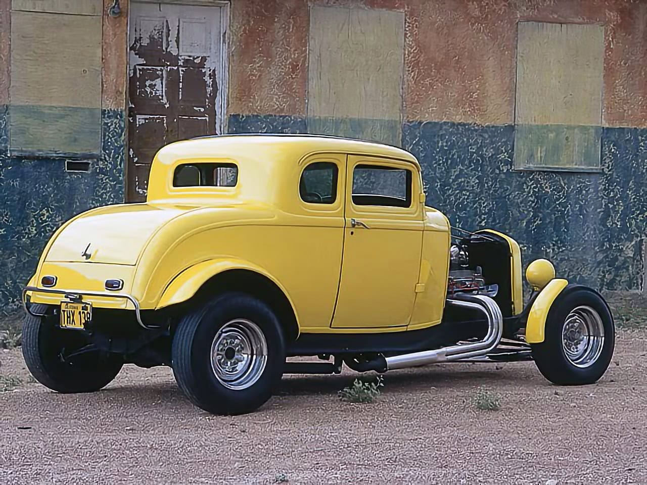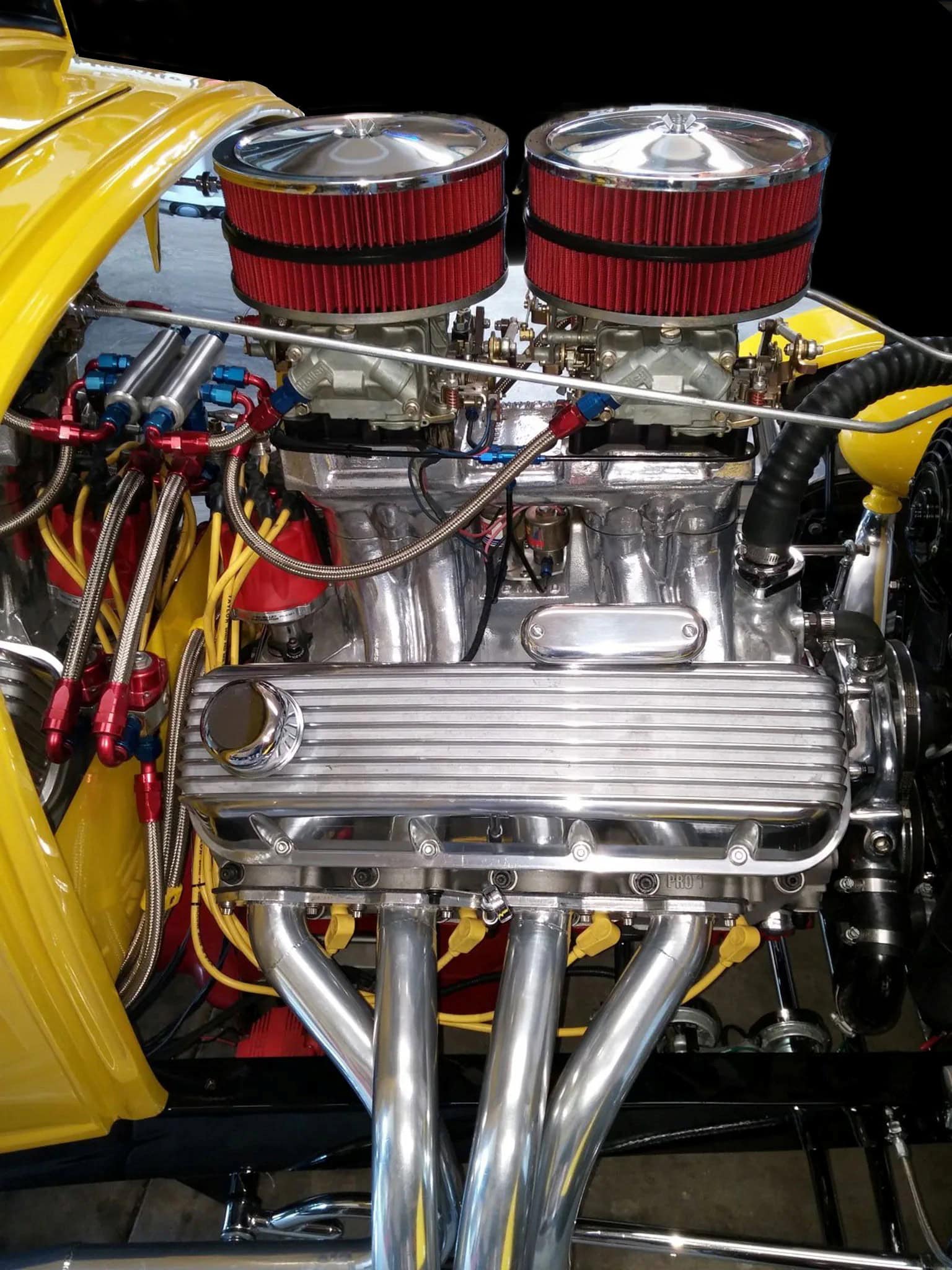 La calandre Deuce a été sectionnée de quelques centimètres, puis le Hot Rod a été emmené à l’atelier “Orlandi” situé à San Rafael pour la peinture laquée jaune canari. L’intérieur, à l’origine rouge et blanc, a été teint en noir. Pour conserver le Look des années ’60 d’un Hot Rod de mauvais garçon, Lucas et Kurtz ont stipulé que le moteur devait être bruyant et cracheur de flammes. Un V8 Chevrolet 327ci du milieu des années ’60 à été préparé à atelier de Johnny Franklin qui a rempli la facture avec un “Man-A-Fre” plutôt rare contenant un quatuor de carburateurs Rochester 2G double corps.