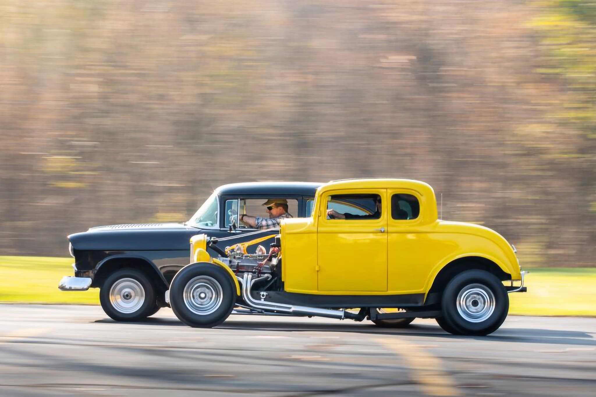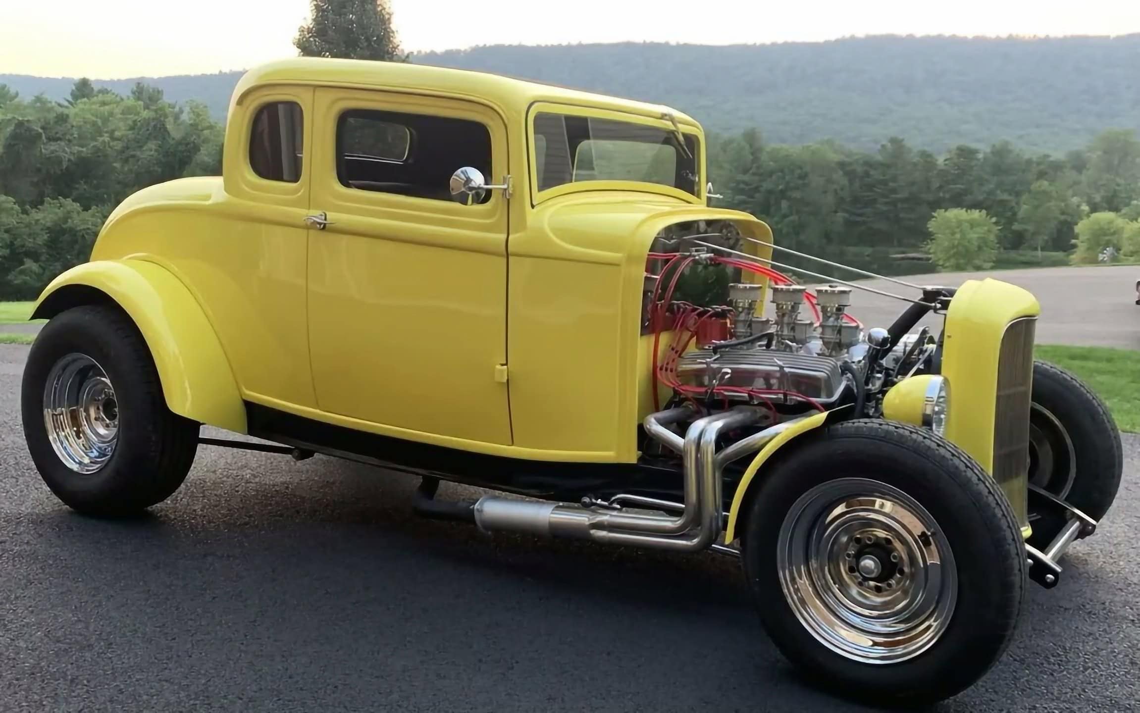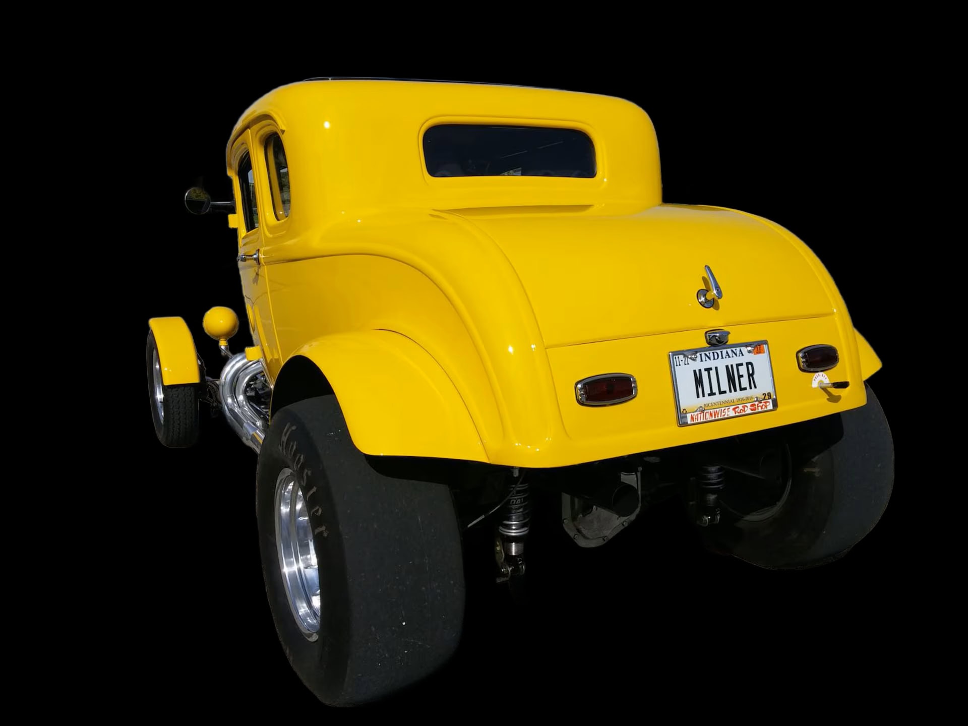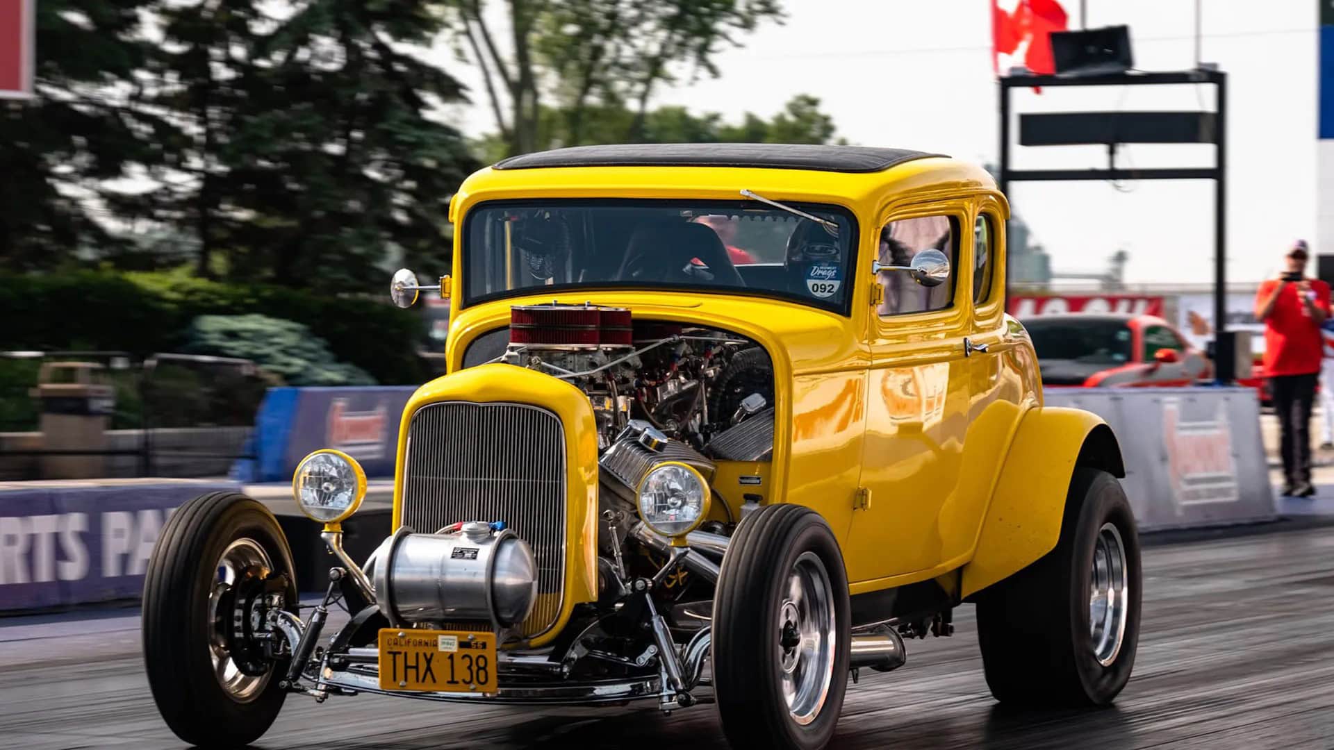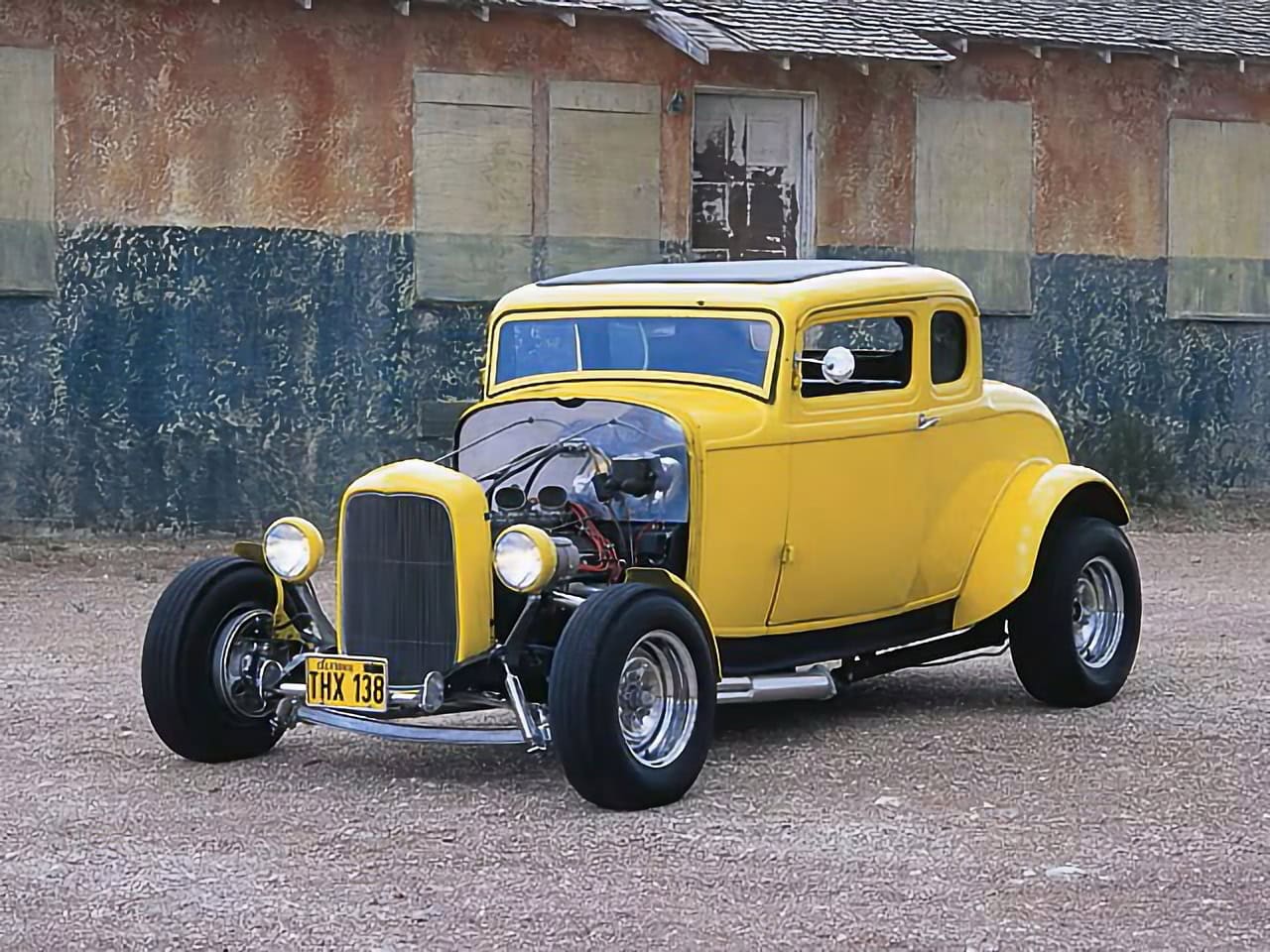 La calandre Deuce a été sectionnée de quelques centimètres, puis le Hot Rod a été emmené à l’atelier “Orlandi” situé à San Rafael pour la peinture laquée jaune canari. L’intérieur, à l’origine rouge et blanc, a été teint en noir. Pour conserver le Look des années ’60 d’un Hot Rod de mauvais garçon, Lucas et Kurtz ont stipulé que le moteur devait être bruyant et cracheur de flammes. Un V8 Chevrolet 327ci du milieu des années ’60 à été préparé à atelier de Johnny Franklin qui a rempli la facture avec un “Man-A-Fre” plutôt rare contenant un quatuor de carburateurs Rochester 2G double corps.
