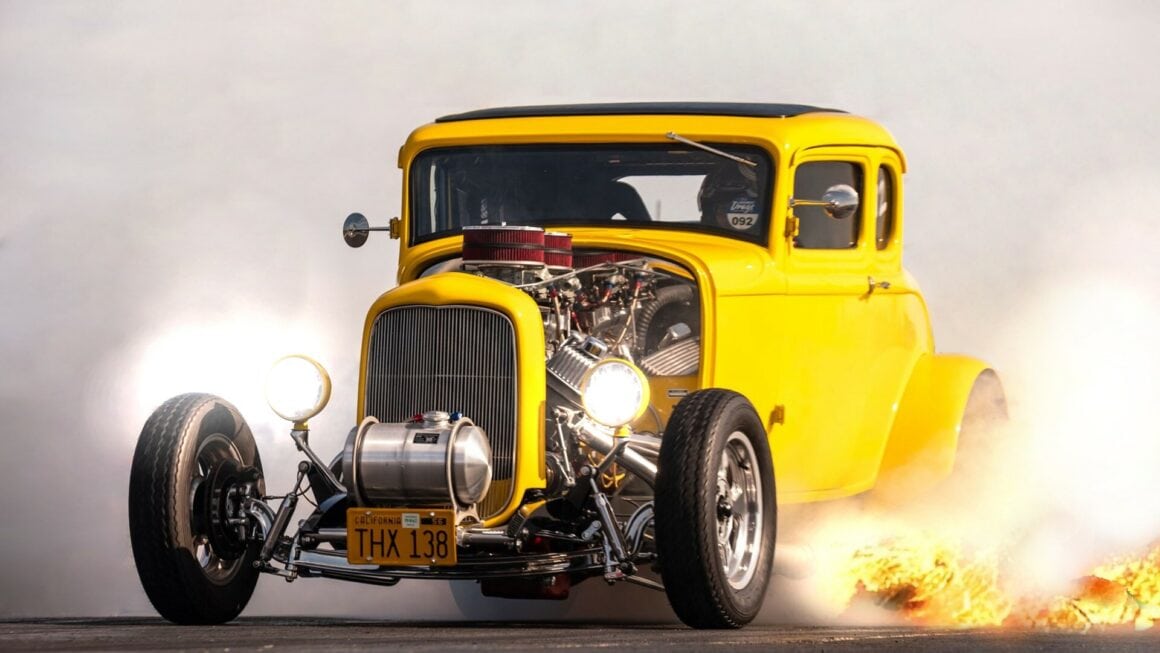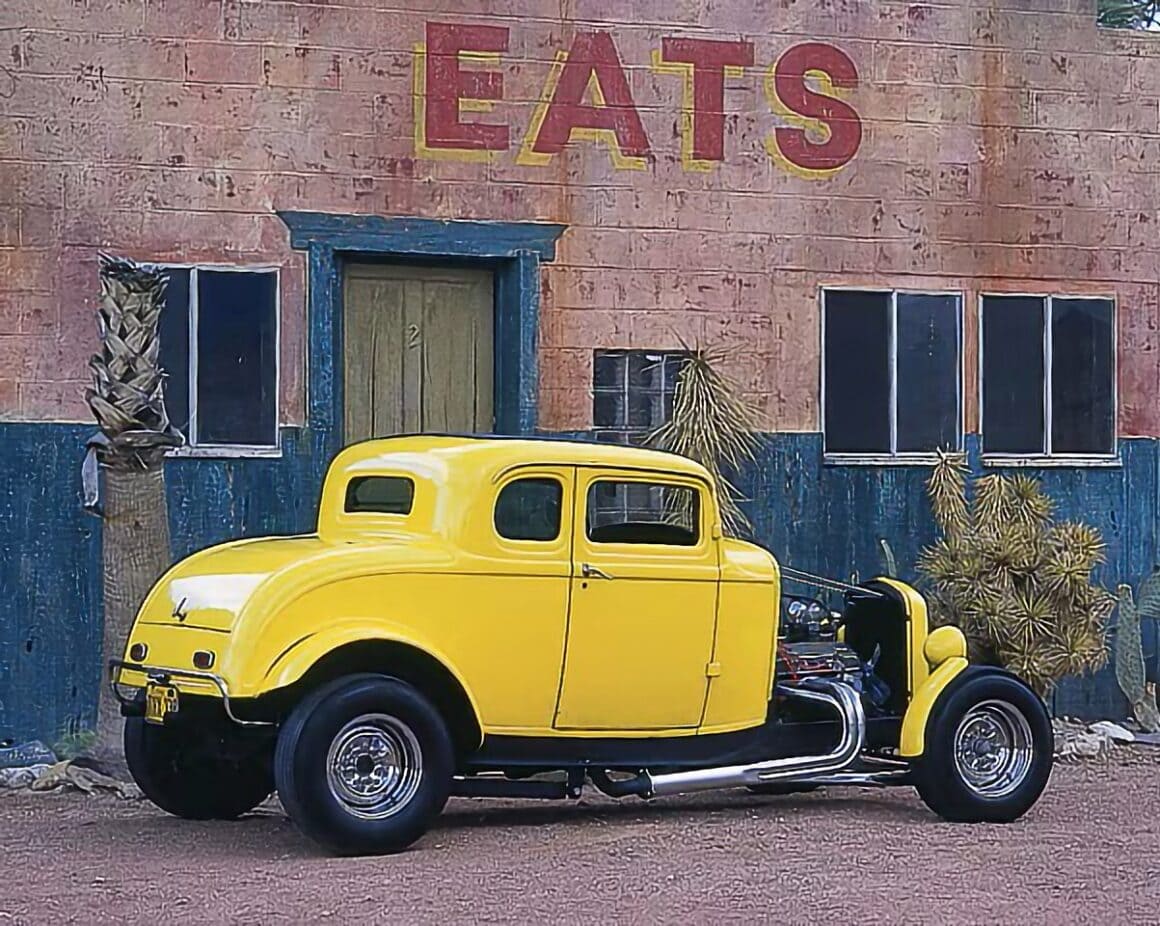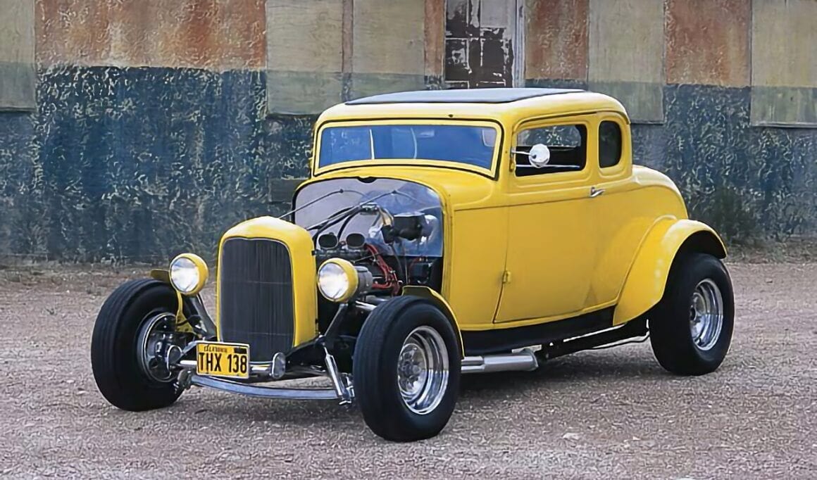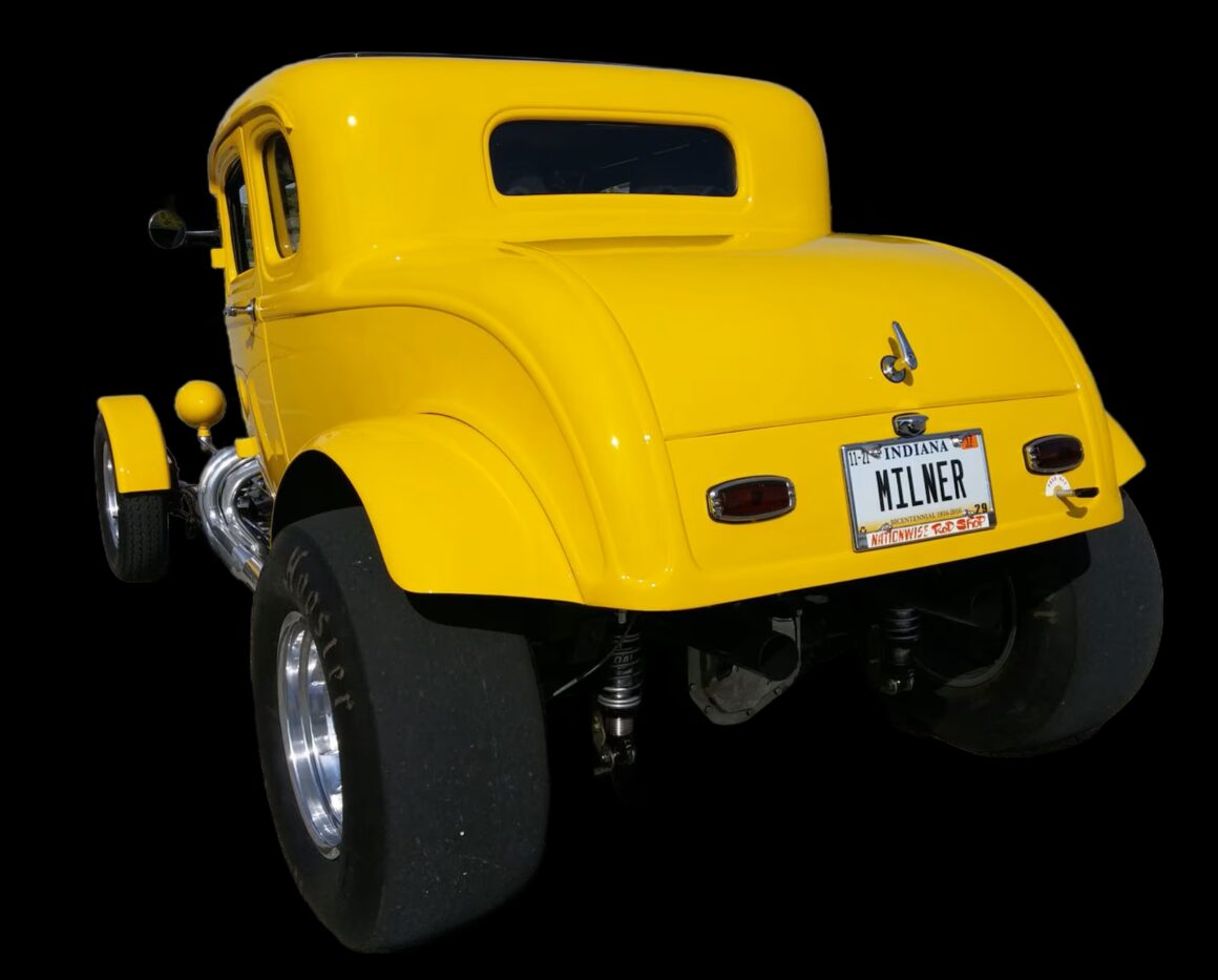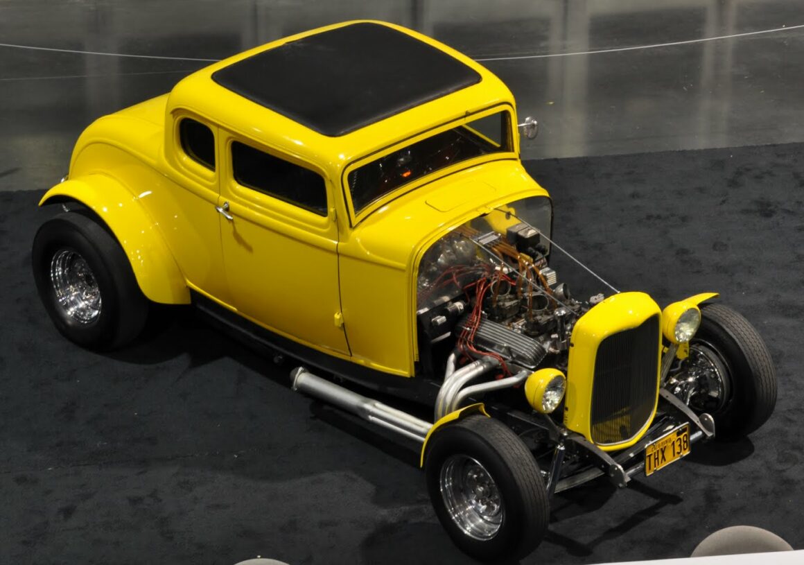 Souvent, lorsque quelqu’un fait référence à ce Coupé Ford B32 cinq fenêtres, c’est qu’une vague de nostalgie le submerge, le public pas toujours, car le Coupé American Graffiti doit son existence même au film de George Lucas, American Graffiti, qui jouait sur les souvenirs de lycée des années’50 et’60 et les temps ont changés… En vérité, le Hot Rod Ford’32 jaune vif a été construit à l’origine comme un accessoire de plus pour le film culte de 1973. Ce n’était pas censé d’être une star de marque, mais à mesure que la popularité du film grandissait, celle du coupé augmentait également.