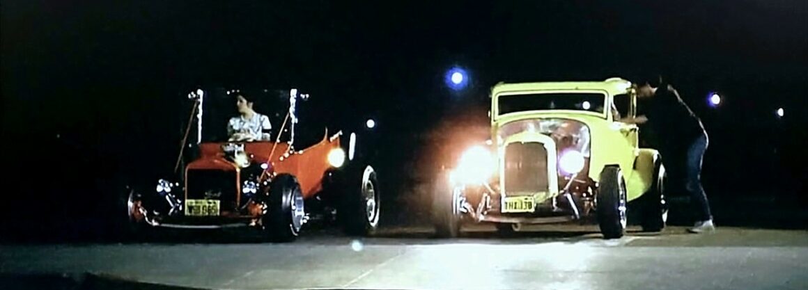 Le point culminant du film, bien sûr, est la célèbre scène de course de dragsters vers la fin. Dans cette scène, Milner affronte la Chevrolet’55 noire conduite par Bob Falfa, interprété par Harrison Ford et tout s’est déroulé sans problème, bien que la Chevy ’55 a refusé de se renverser pour le grand crash final, de sorte que l’équipe de tournage a dû physiquement faire rouler la voiture sur le côté pour le plan ! En ce qui concerne l’avenir de ce coupé, lorsque le film a été mis dans la boîte et présenté à Universal Studios pour la distribution, on a senti que le destin était intervenu pour sauver la voiture pour la postérité.