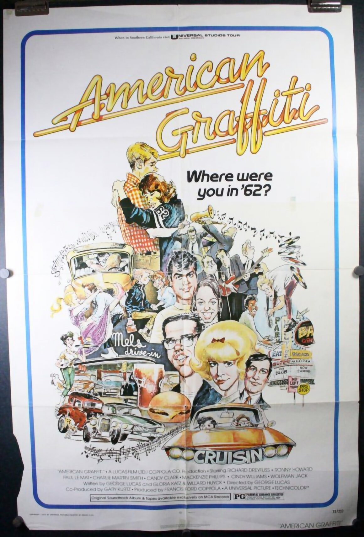 Le film American Graffiti sorti en 1973 avait été réalisé et coécrit par George Lucas, avait été produit par Francis Ford Coppola et coécrit par Willard Huyck et Gloria Katz. Le film se déroulait à Modesto en Californie en 1962 et se voulait être une représentation de la jeunesse américaine de l’époque avec des vadrouilles en Kustom’s et Hot Rod’s sur musique Rock ‘n’ roll. À travers une série de saynètes, il racontait l’histoire d’un groupe d’adolescent(e)s et de leurs aventures au cours d’une seule nuit. Alors que Lucas travaillait sur son premier film, THX 1138, Coppola lui avait demandé d’écrire un scénario “Ado”.