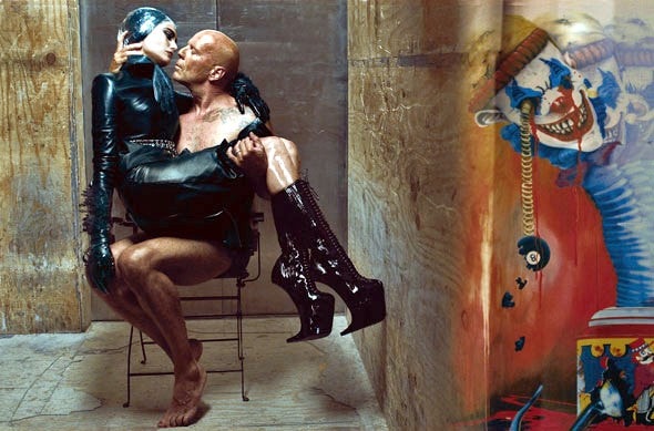 A tel point que Bruce à viré masochiste dans le BDSM… une “affaire” ou il s’est fait “tirer le portrait” avec sa femme, par Ken Markus, une légende vivante, “le” photographe par excellence de ce milieu.