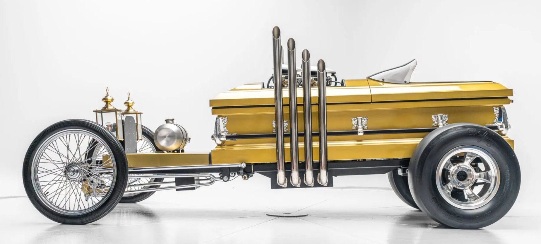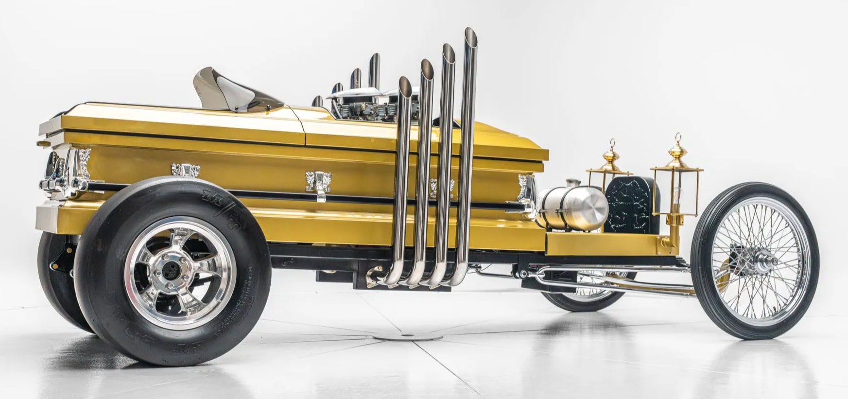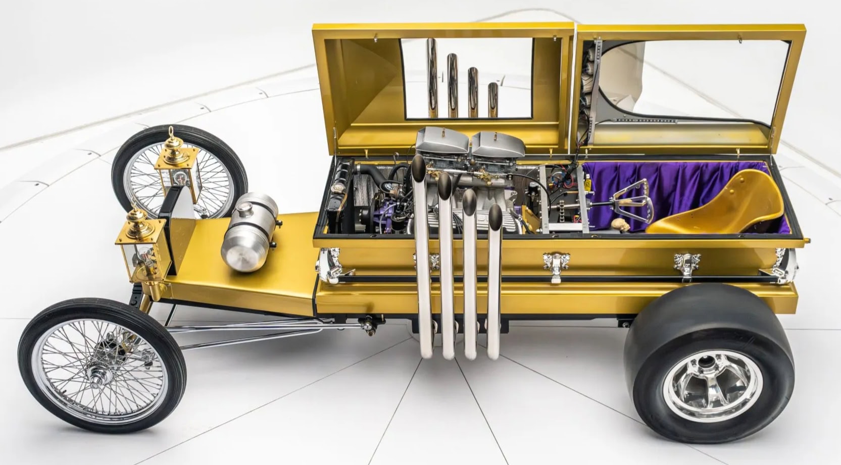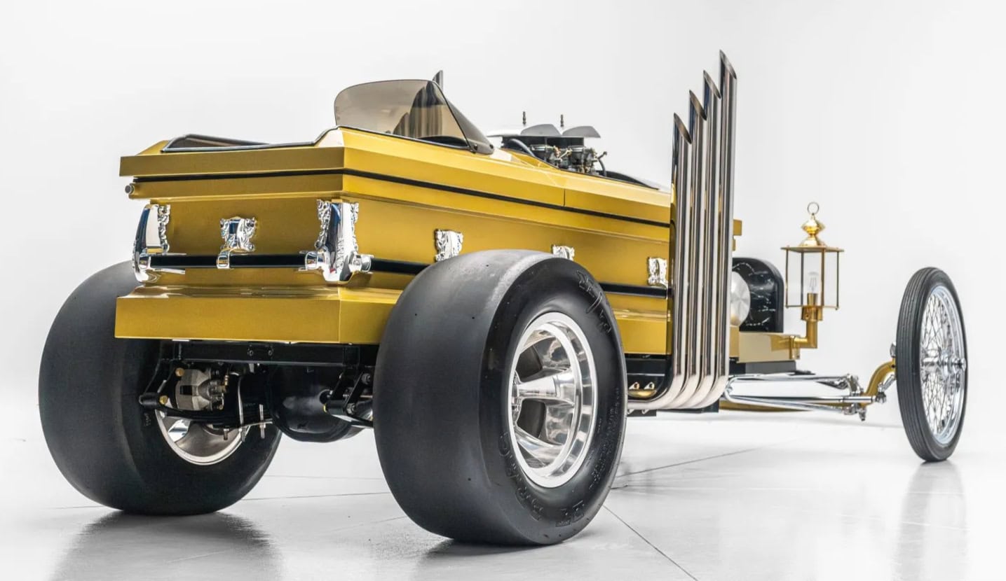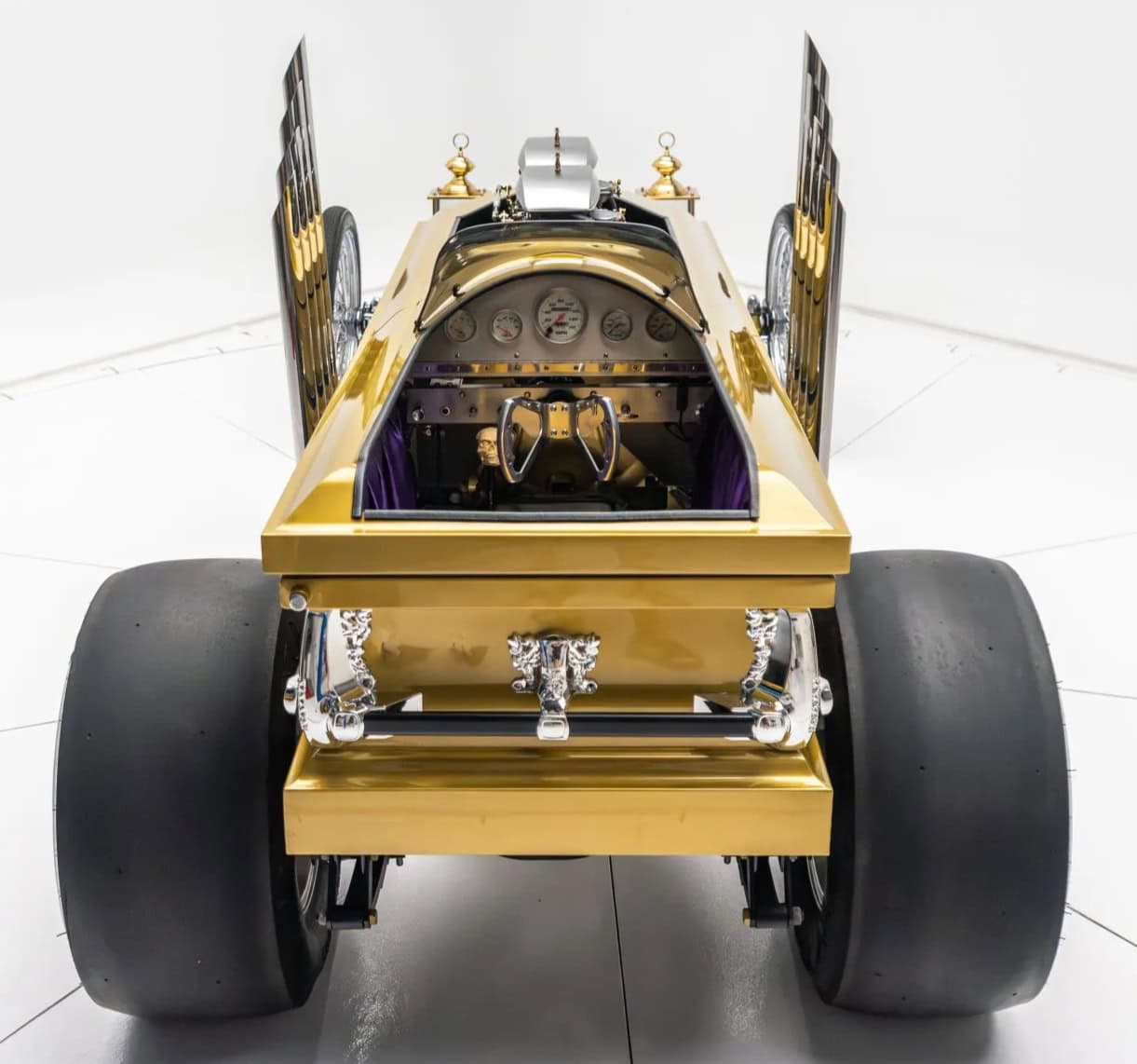 Ce véhicule unique est une réplique du dragster-cercueil “Drag-U-La”, apparu dans un épisode datant de 1965 de la série télévisée américaine “Les Monstres” . Il est typique d’une décennie marquée par des bouleversements sociaux, culturels et politiques qui ont profondément influencé le monde dans une période qui est considérée comme “révolutionnaire”… Cette décennie a été marquée par une foule d’événements qualifiés de majeurs…